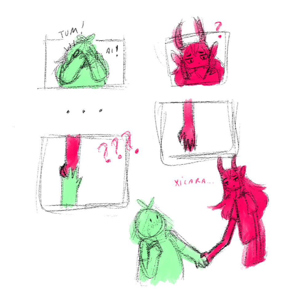 a arte de beatrice e arin pode parecer meio "estranha" nesse e nos próximos capítulos pois eu estou com um probleminha de tremedeira :^) (aparentemente é um efeito colateral do meu antidepressivo)