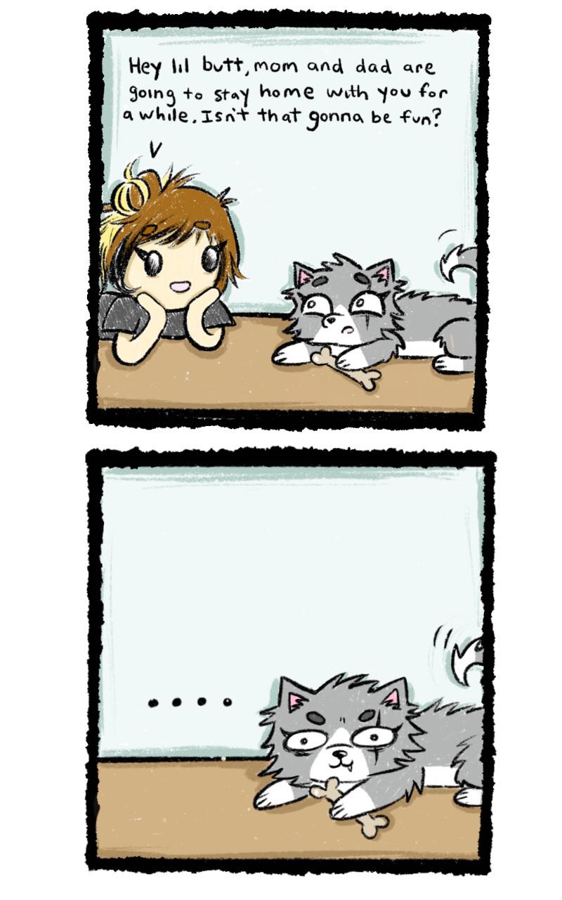 YAY first comic :D So recently we got a new puppy named Nami. She's supposed to be a mix between a husky and a pom but instead she's more of a mix between a rabid fox and a demon. But she's really cute and has a ton of sassy personality which makes me laugh constantly. Enjoy!
