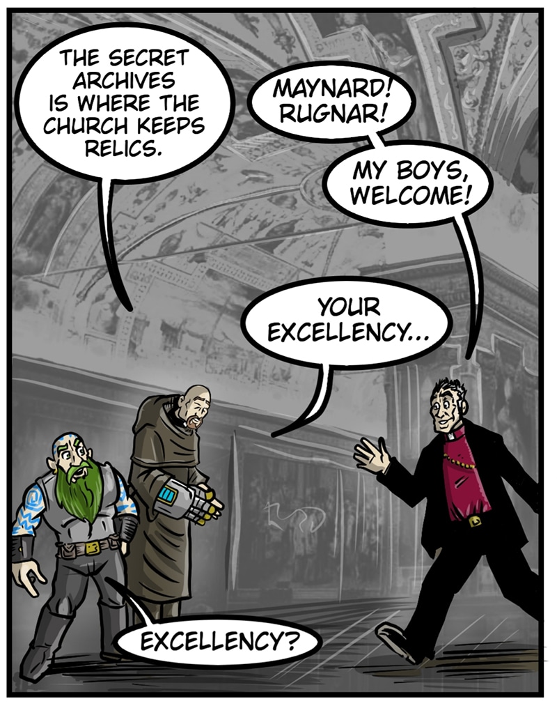 Maynard and Rugnar go to the Vatican to debreif with Bishop Billings and are interrupted by an unexpected visitor!