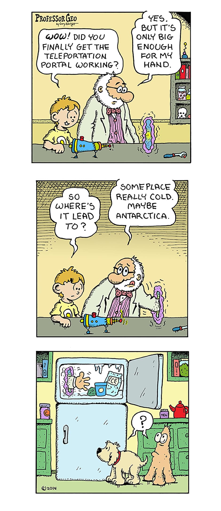 Professor Geo is an enthusiastic scientist that doesn't always foresee the consequences of his experiments, While not being very self aware, he's more than willing to use his young protege, Atom, as his test subject. After all, it's all for the advancement of science. For more of Gary Albright comics please check out my books at Amazon.