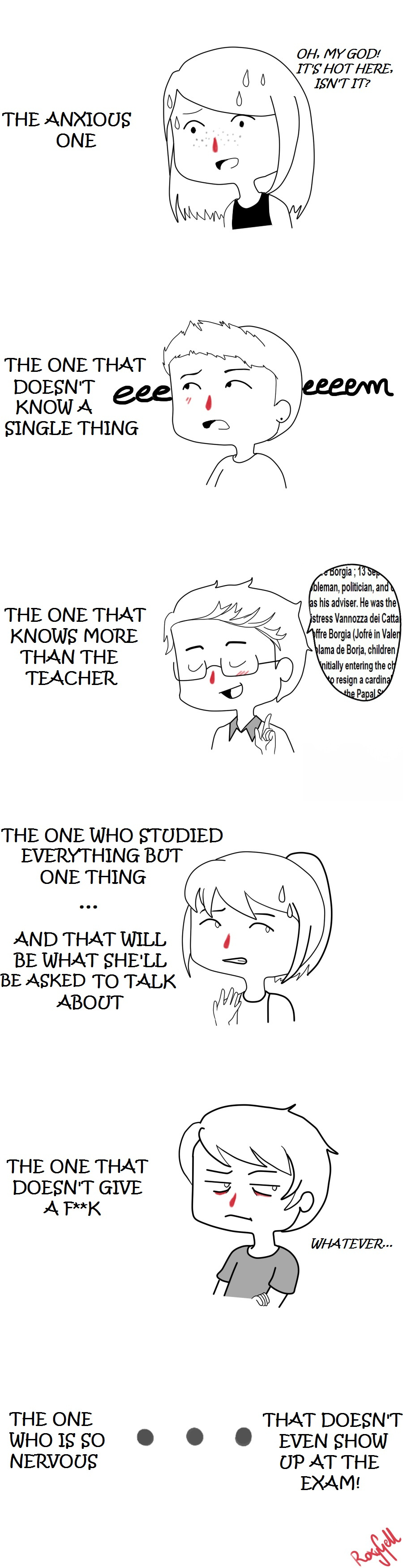 I wanted to be a mix of the "whatever" one and the "who knows more than the teacher" one, but I probably am theanxious one...