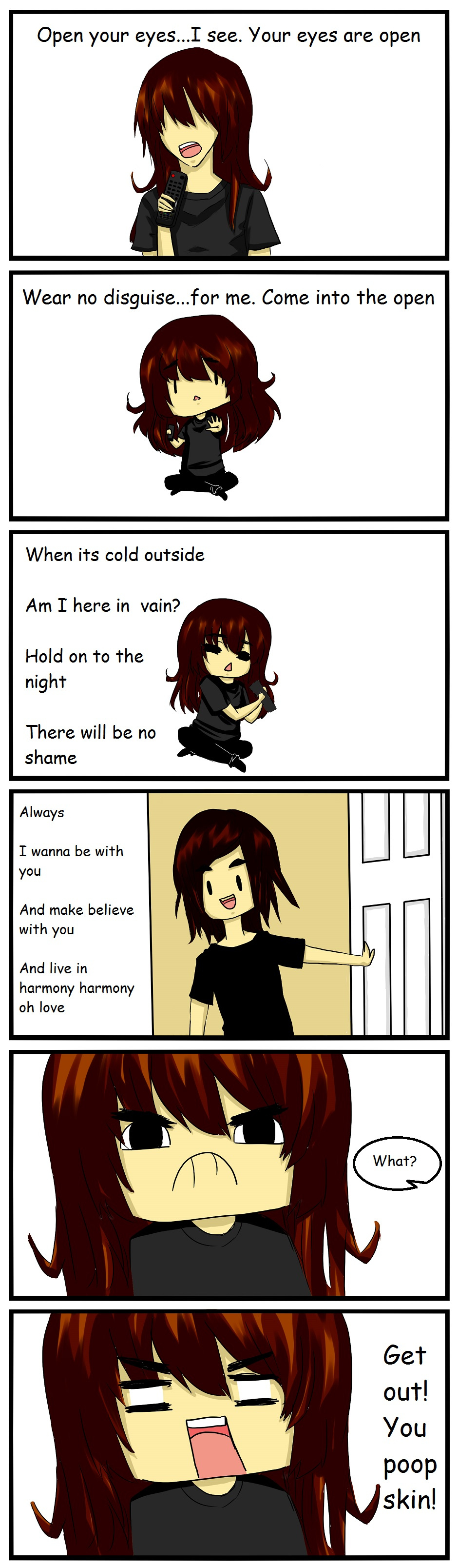 I swear...almost every time I karaoke, one of my brothers decides to butt in and either join or just watch while giving me strange looks. And I'm not afraid to admit that I sing pretty good. Maybe not the best, but I'm also not bad.
