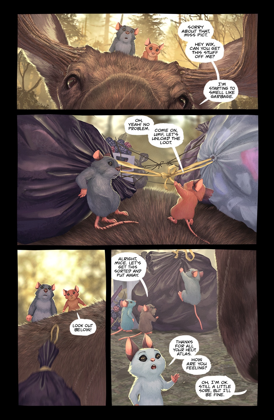 Scurry is a dark fantasy animal comic about a colony of mice in an abandoned house who are struggling to survive a long, strange winter. Being hunted by feral cats and predatory birds is part of life for these mice, but beyond the fences stalks something far more fearsome...