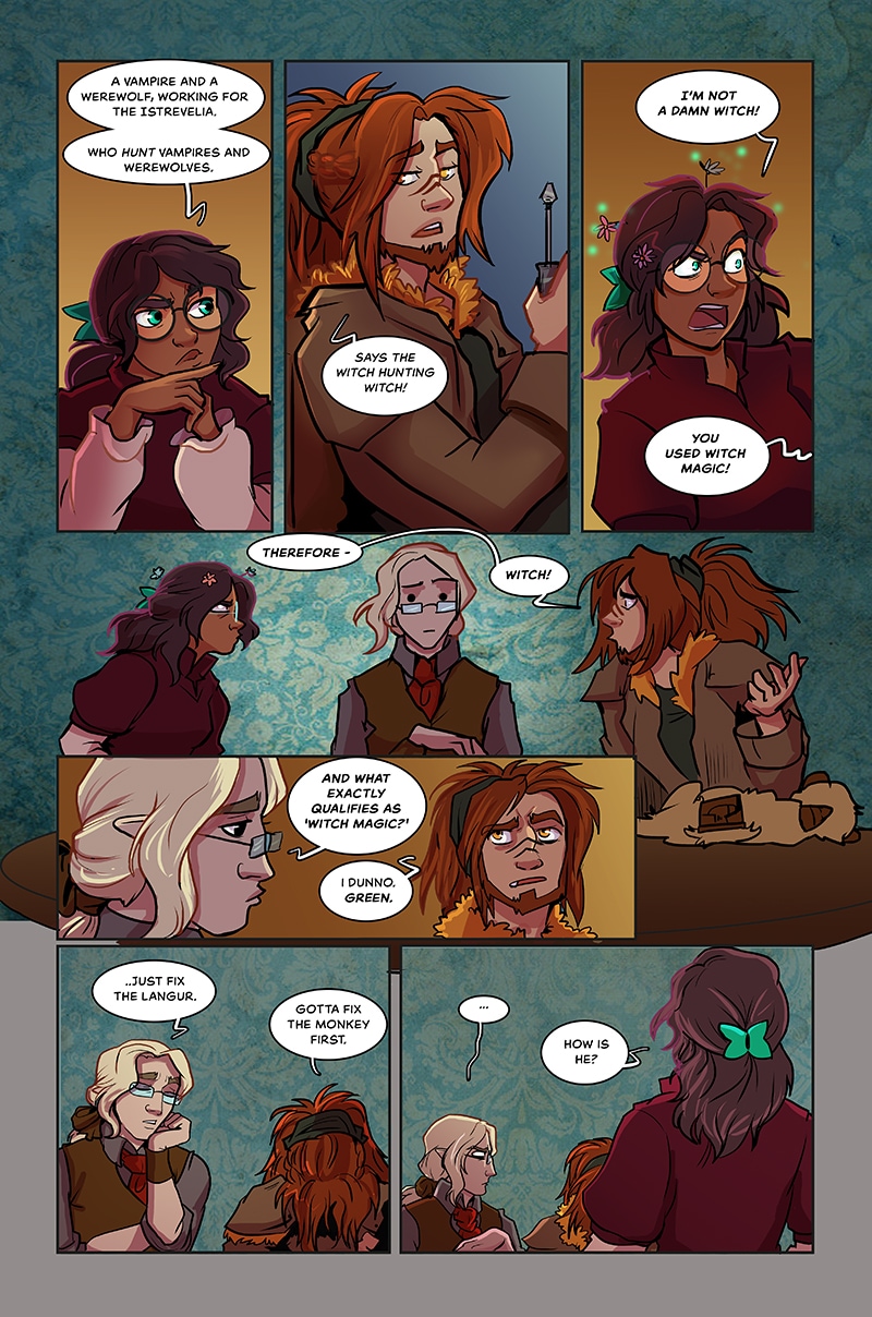 Elmira Del'merawyst is a freelance venator, keen to stay one step ahead of her rivals and uncover the secrets of her past, but when a hunt goes wrong she ends up entangled with the Istrevelia, and finds herself dealing with some very strange colleagues! Warnings for mild blood and gore!