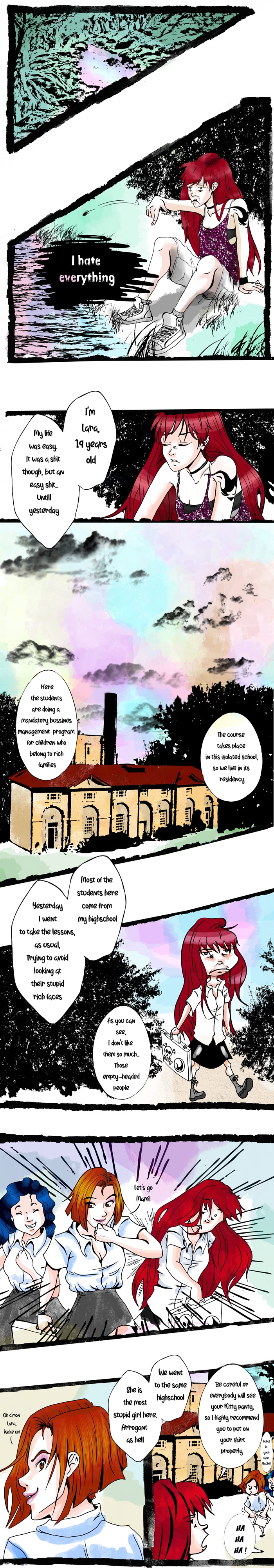 As a future business woman, Lara has to study a course in the middle of nowhere. She is not really happy with her life, but she was okey until her life turned into a f*cking hell: She has to work with her worse enemy to get along with him, at the same time that she witnesses a strange phenomenon surrounding her school.