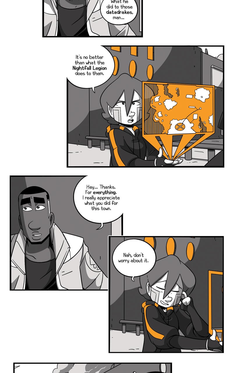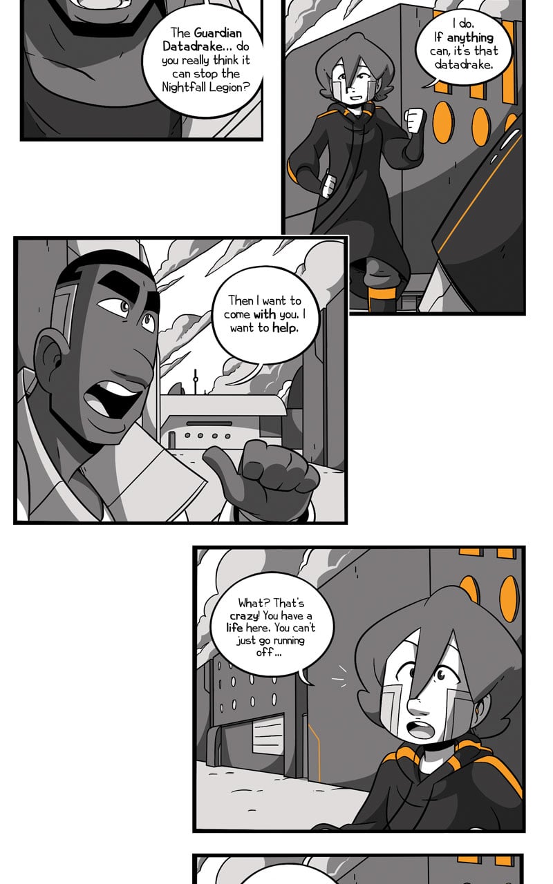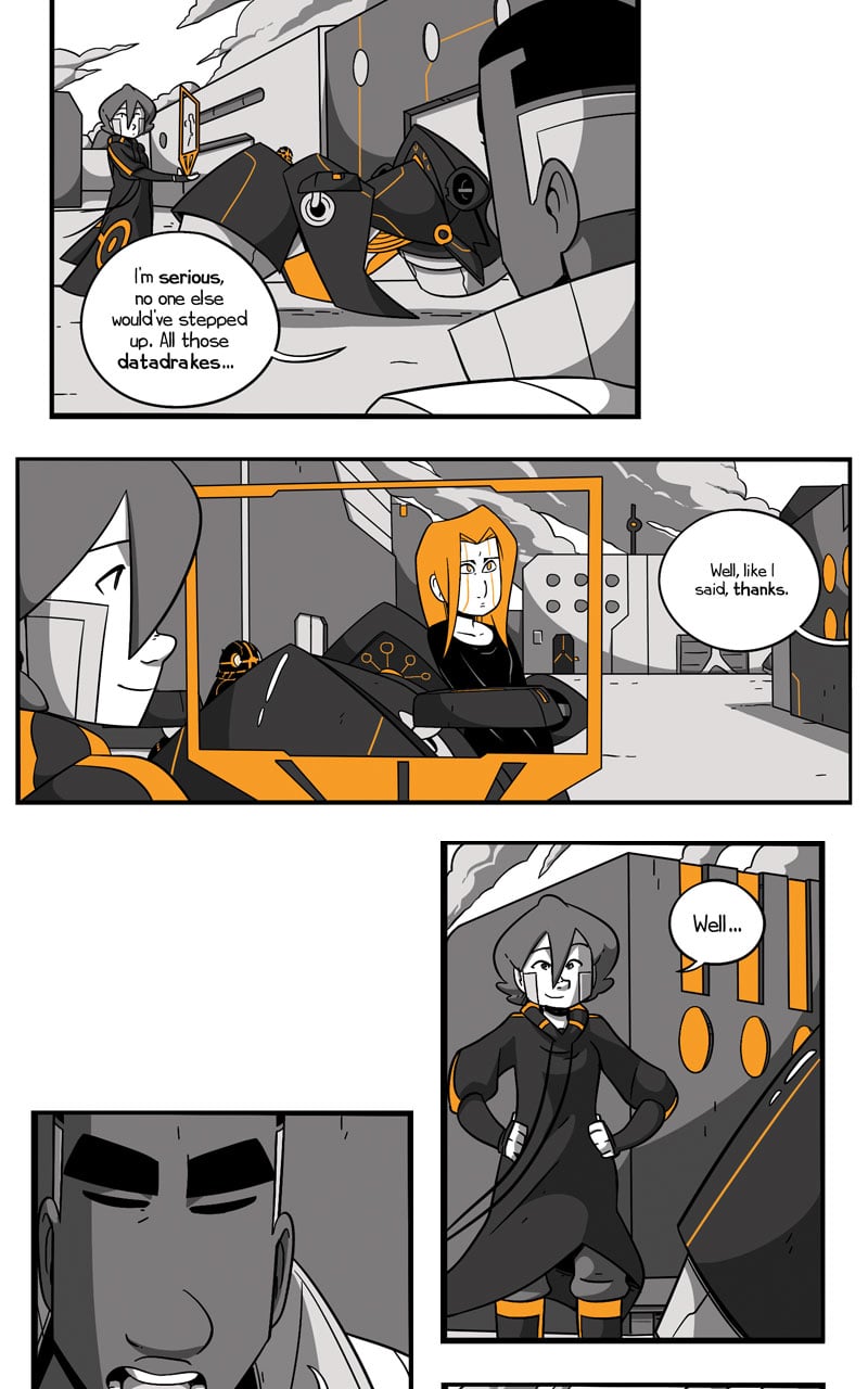 Grab your illegal datadrake gun and your questionable moral values, 'cause it's the end of book two! Tune in every Tuesday for the further adventures of Athena and company <3