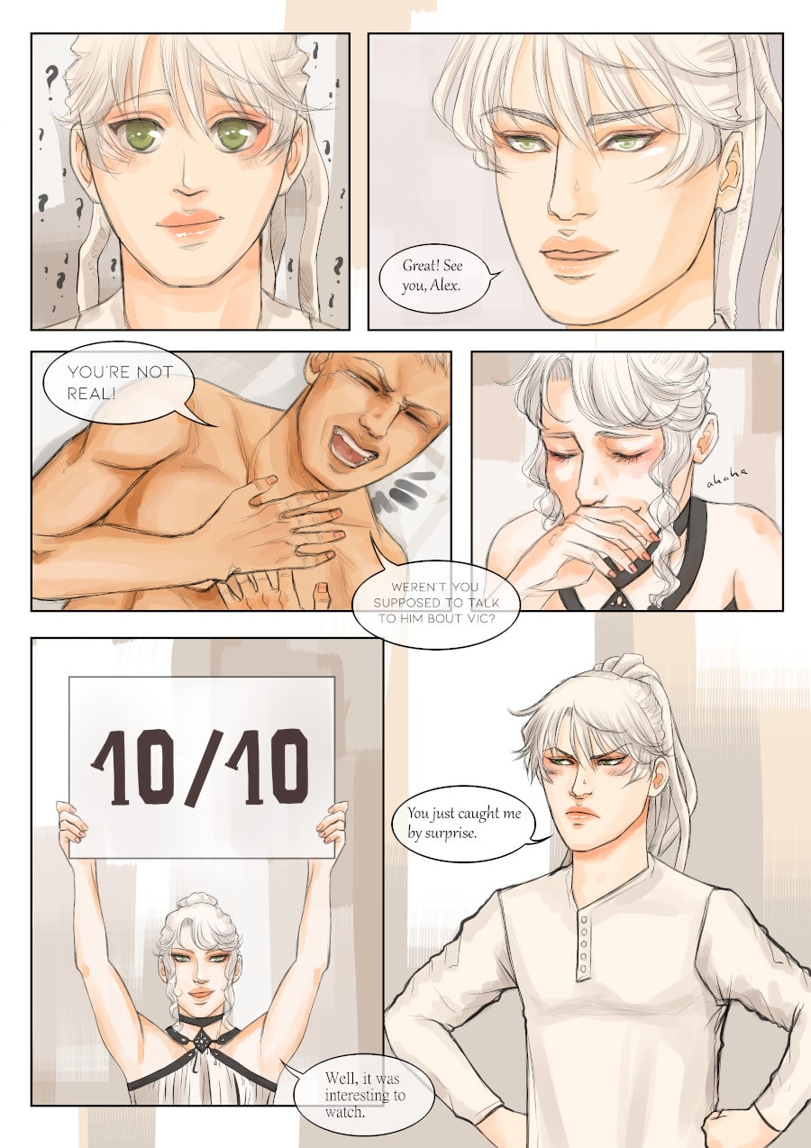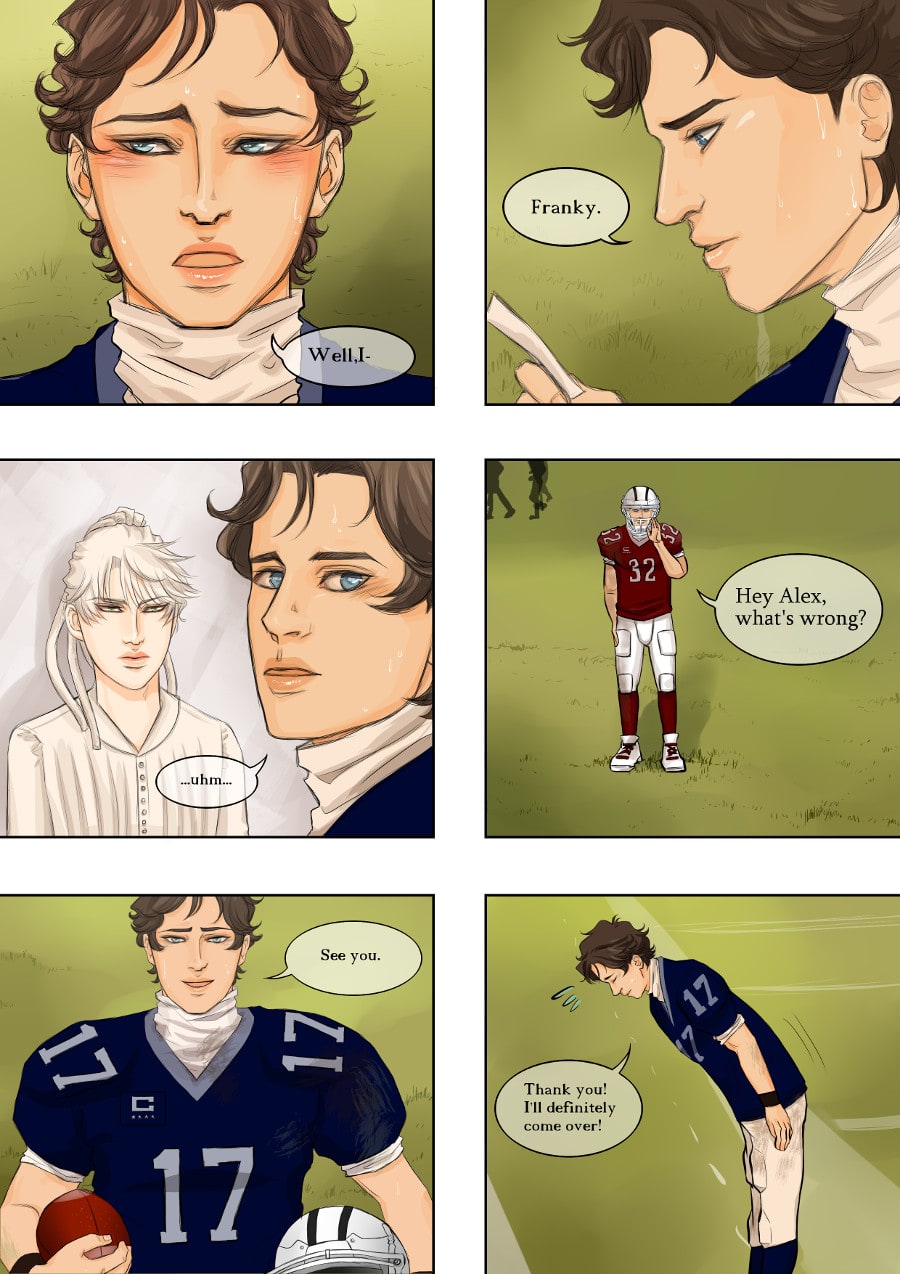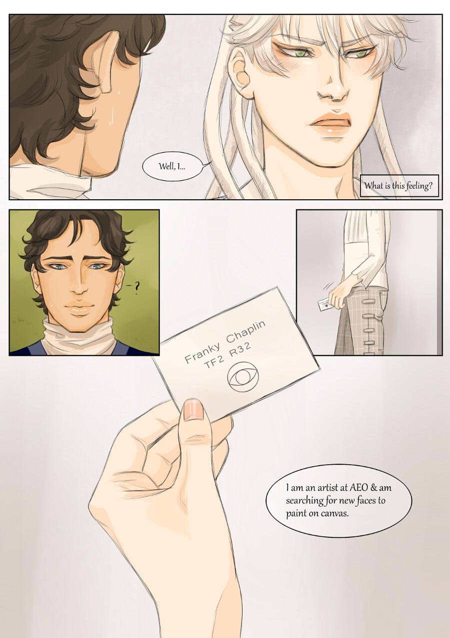Alex is overwhelmed and Franky doesn't know how to handle beautiful people. Great start for both of them. (I will sometimes add pages to my latest episodes from now on, so we don't have a million episodes in the end xD')