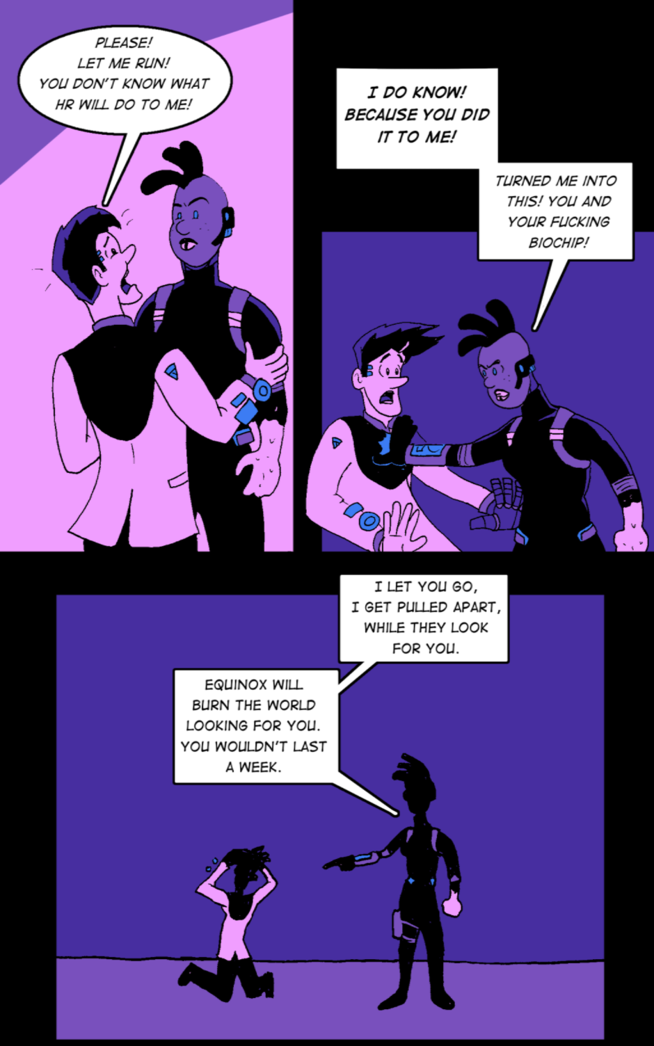 After being injured in an accident, Olivia is turned into a cyborg against her wishes by the Equinox Corporation. With the promise of a new, fully human cloned body, Oliva is sent out on a number of dangerous missions, with the help of a team and some prototype cyberware in this cyberpunk comic.