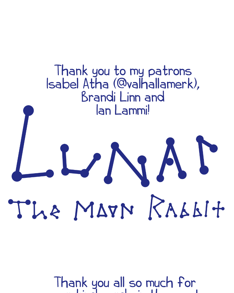 When Lunar, the only Moon Rabbit, finds herself adrift and alone in space, she looks for a planet to land on and gather her memories. Her eyes land on a small water-covered one, with white fluffy clouds around it and a few green spots on its surface.