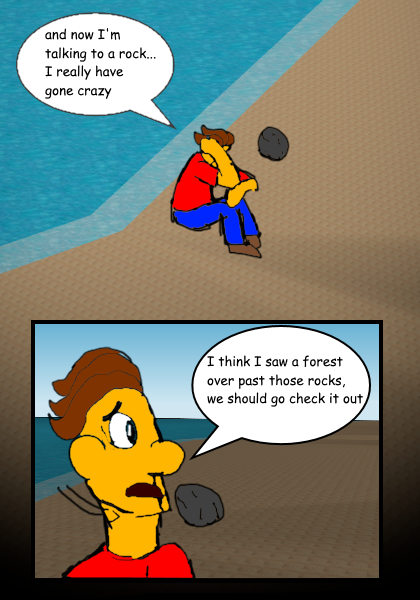 After finishing his story, He decides to ditch his rock friend and head out on his journey.