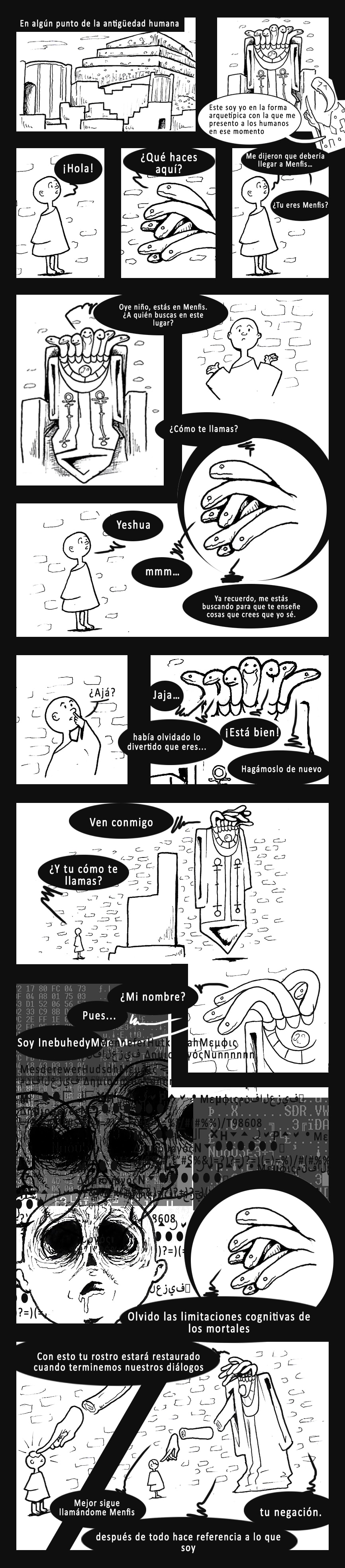 Menfis es un ser proveniente del plano Noun. Yes es su joven aprendiz del mundo material.