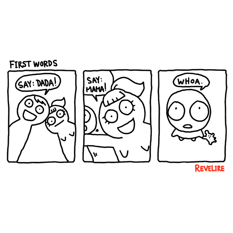 Whoa says his first words.