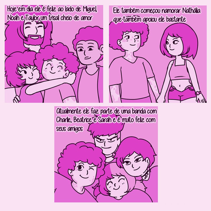 Diário de Sun" é um livro ilustrado com tirinhas feitas por Lana Clarice. Sun é uma criança transgênero, mas essa história não é triste. Uma história feliz de uma pessoa trans é algo revolucionário, não? Sempre curiosa e com vontade de aprender, Sun vive com pensamentos positivos inspiradores, toda sua “vibe” melhora o dia de todos ao seu redor.