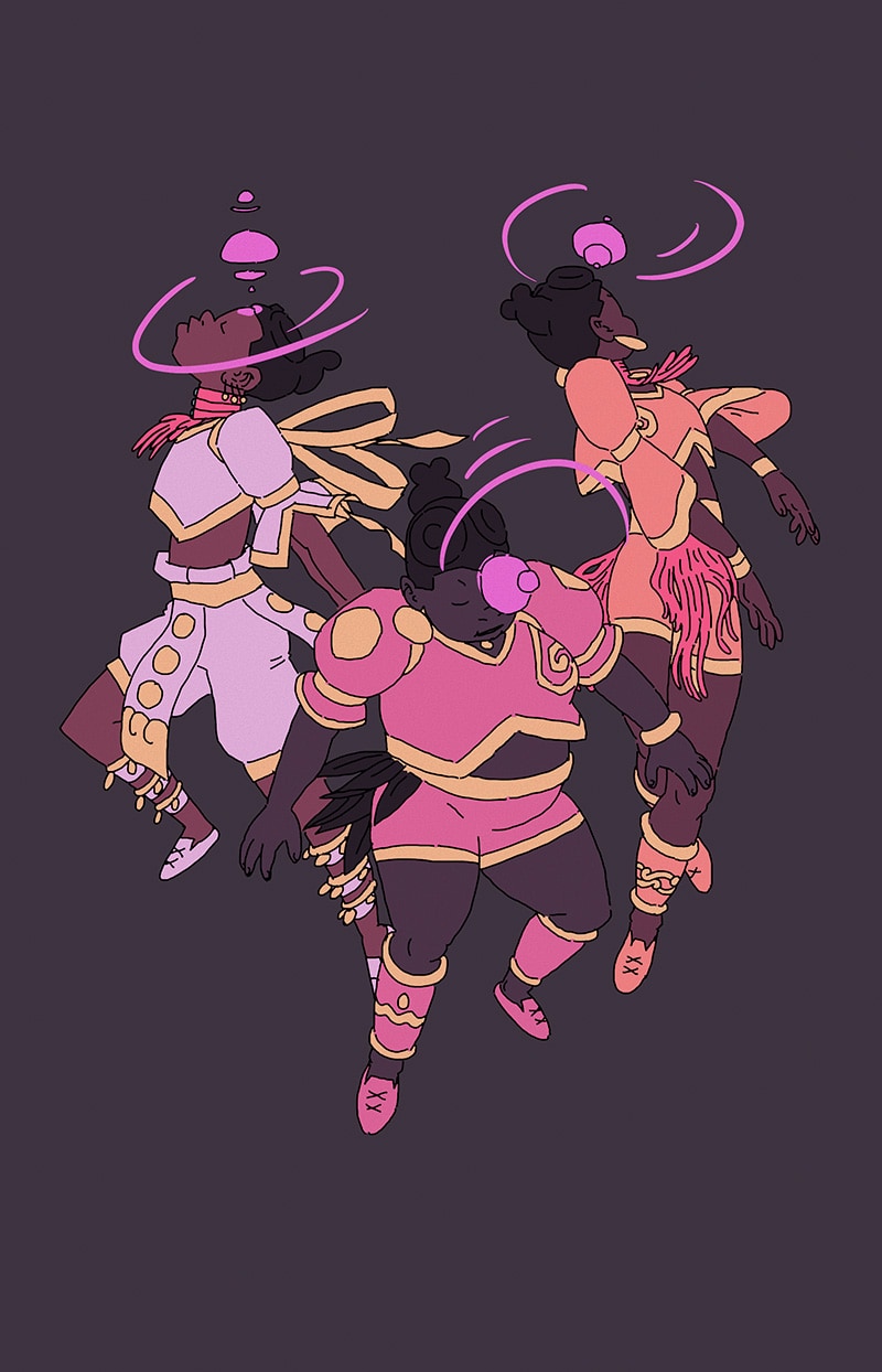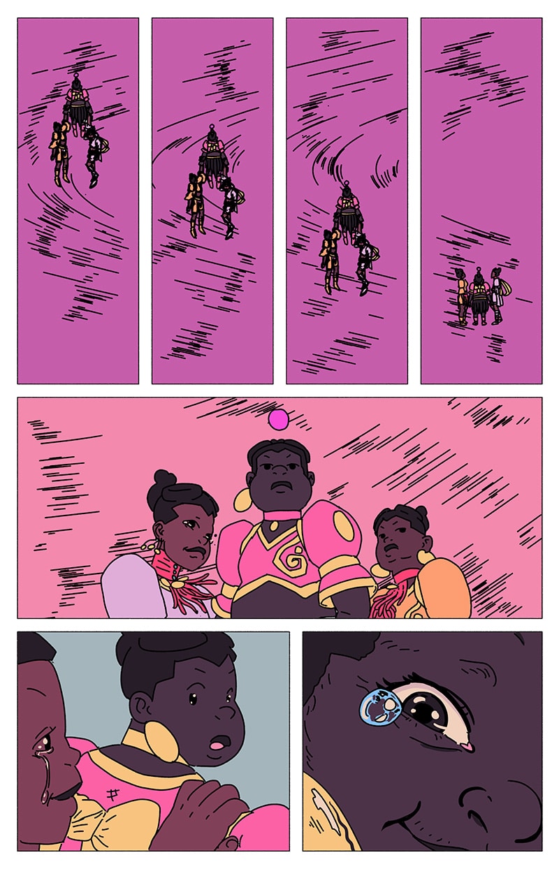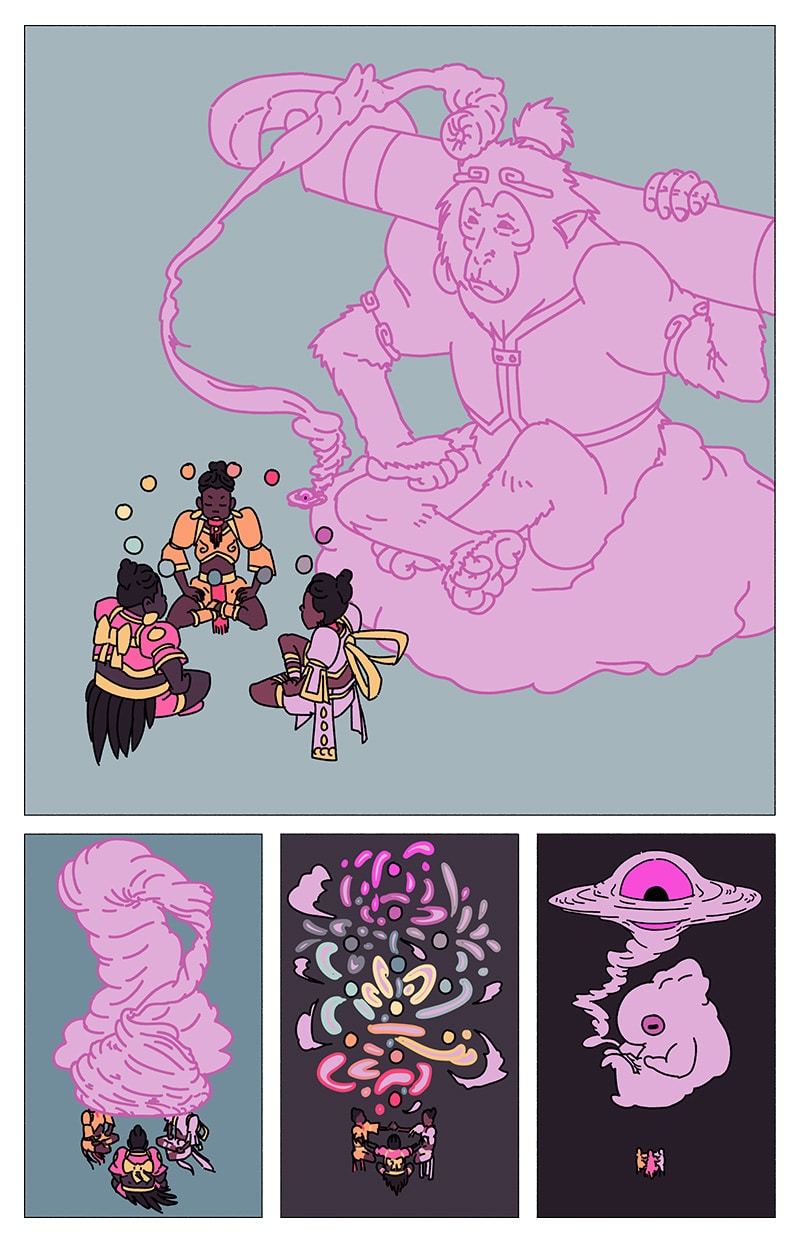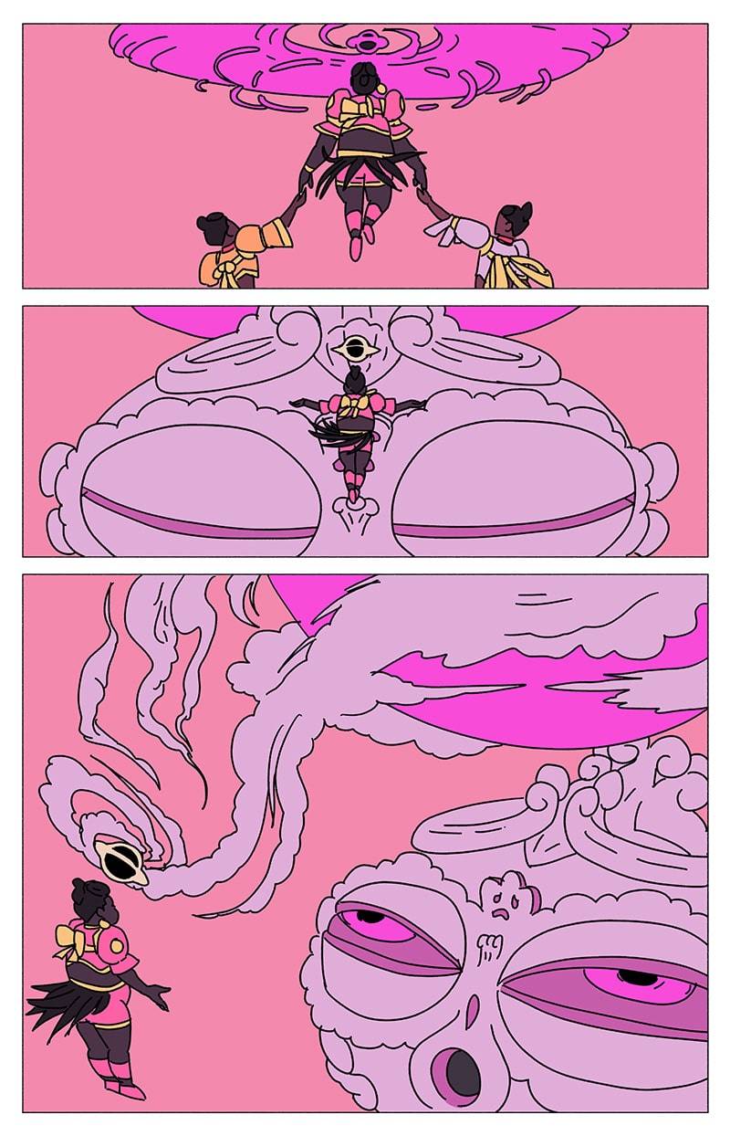'UM' is a magical girl comic abt eugenée, a blk, nonbinary, aspiring birth-worker who finds themself mixed up in a millennia-old conflict btwn the powers that be & a faction of cosmic, shamanic midwives