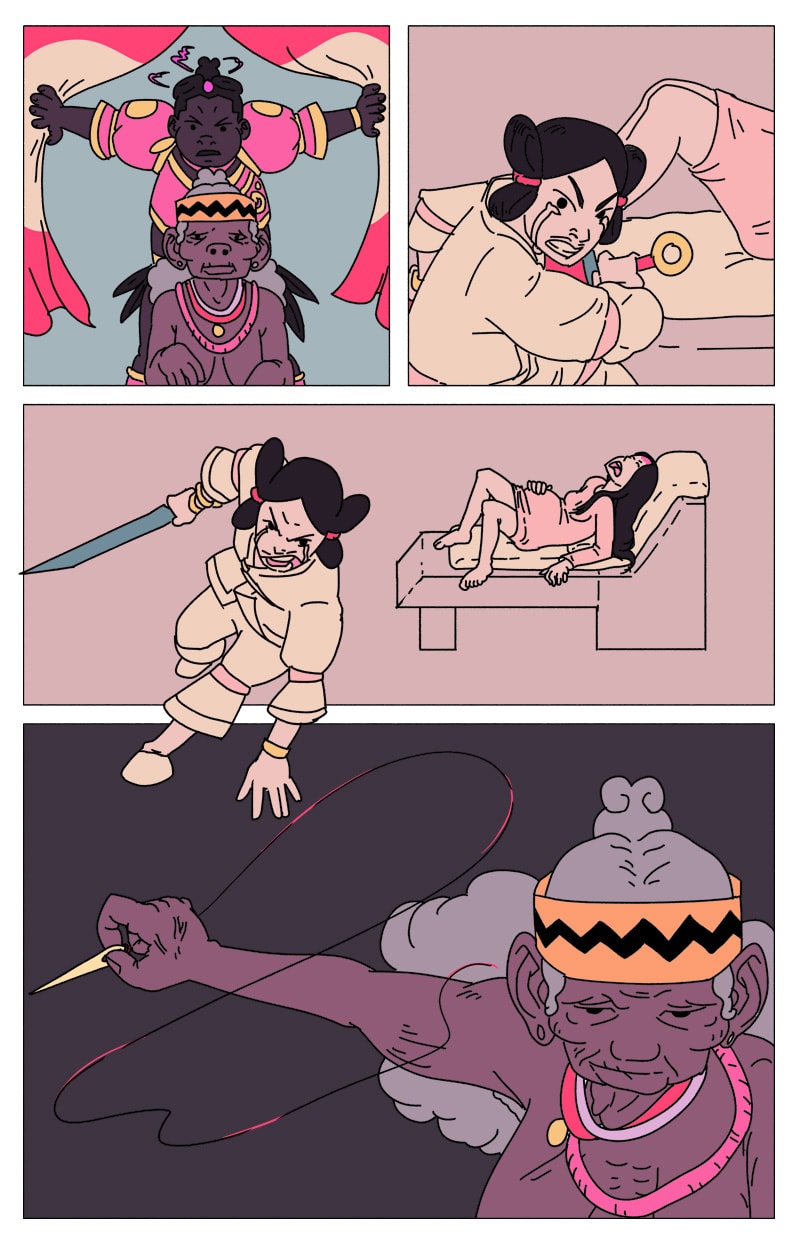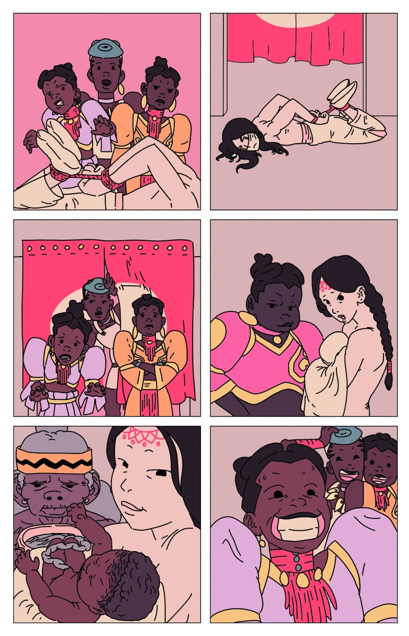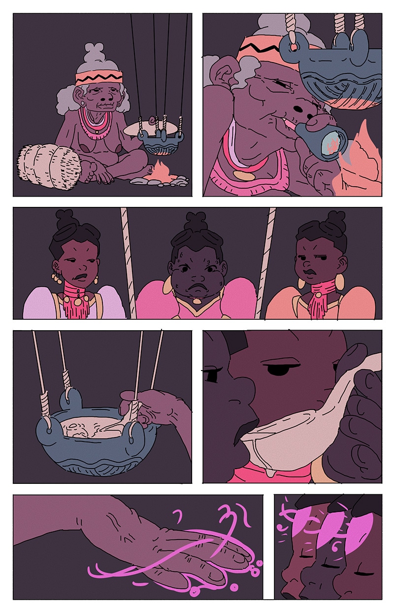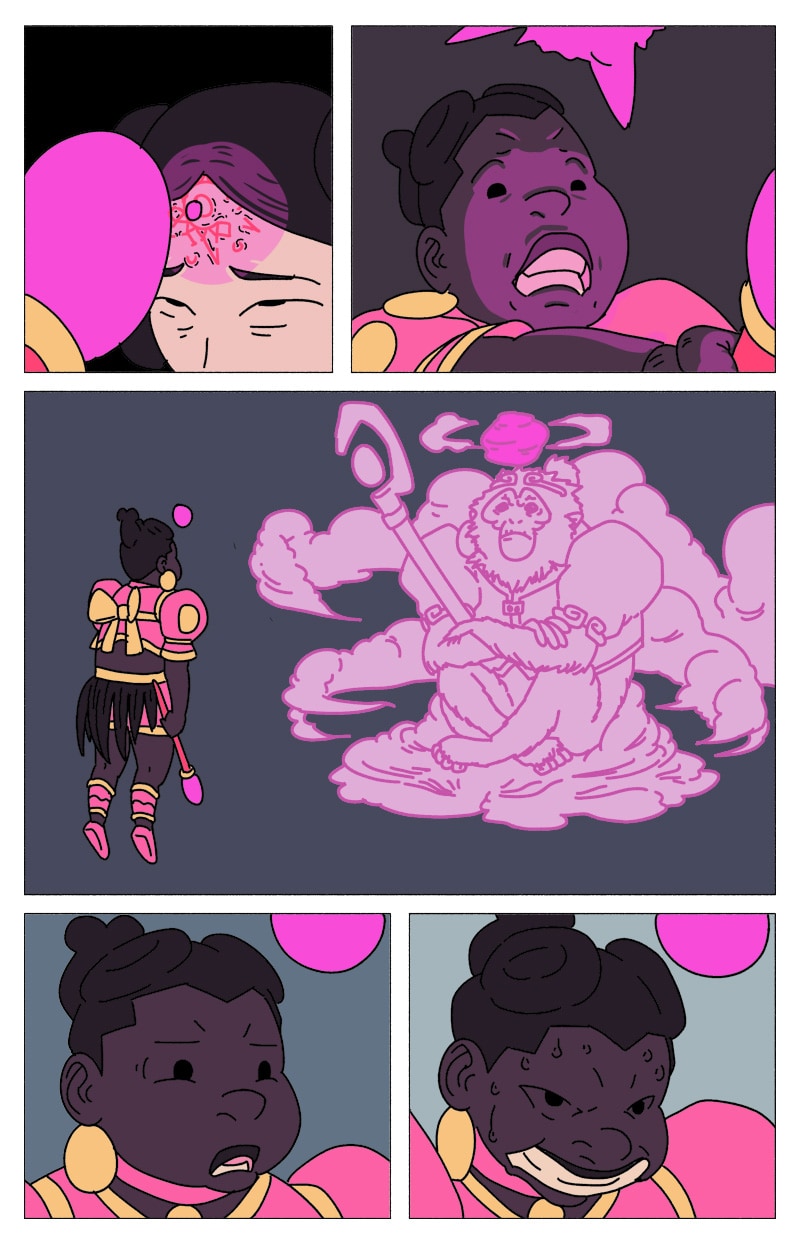 'UM' is a magical girl comic abt eugenée, a blk, nonbinary, aspiring birth-worker who finds themself mixed up in a millennia-old conflict btwn the powers that be & a faction of cosmic, shamanic midwives