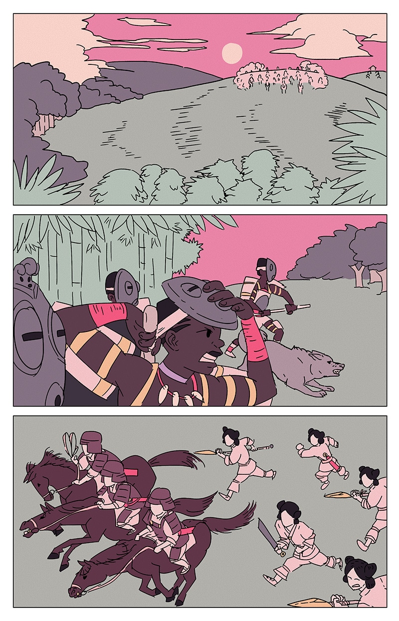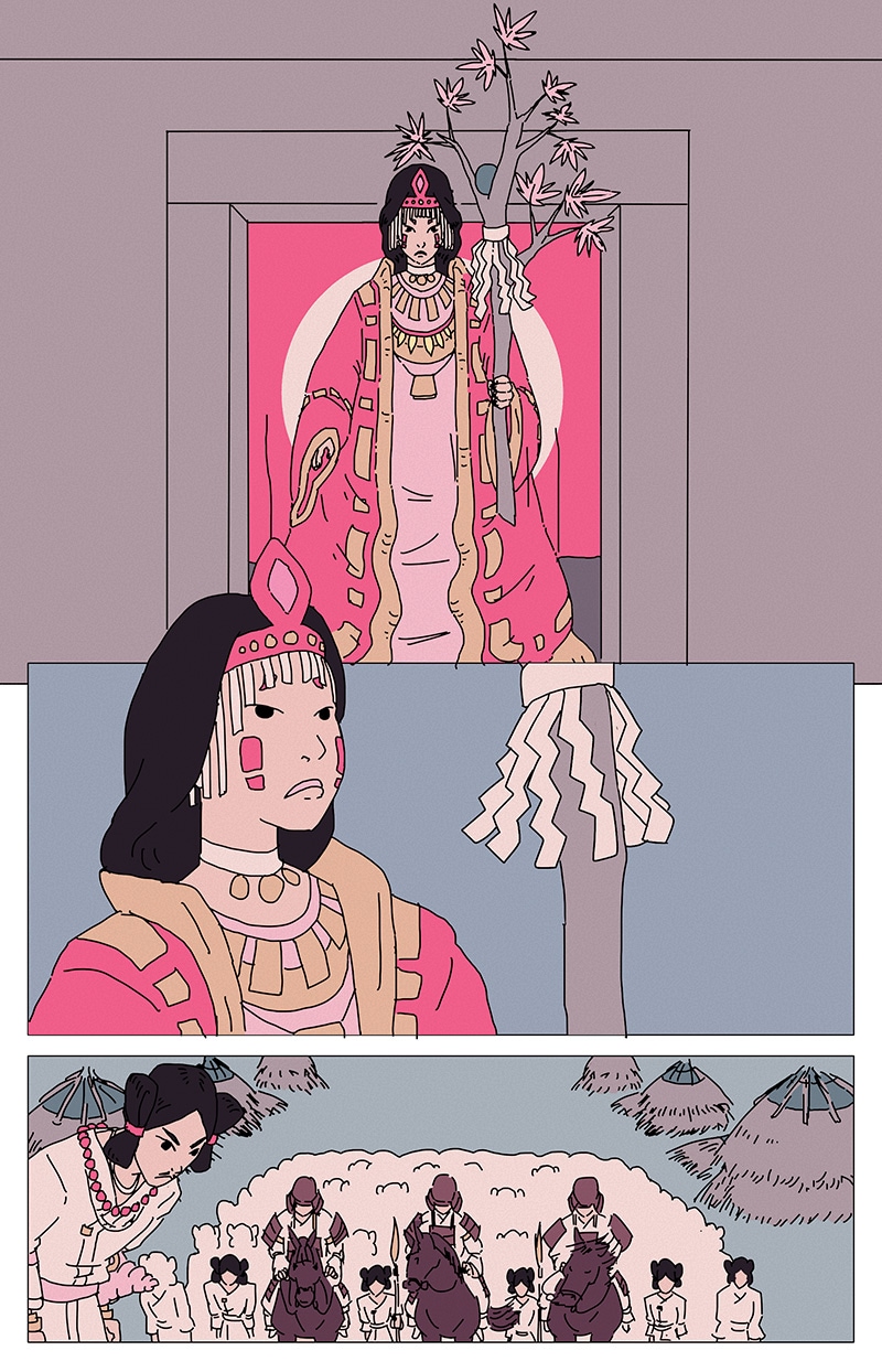 on the peninsula that will one day become the archipelago of japan, a conflict is brewing between the land's indigenous people and a group of monarchic colonizers from across the sea to the west an old shamanic midwife and her three apprentices prepare for the inevitable clash by performing a magic ritual