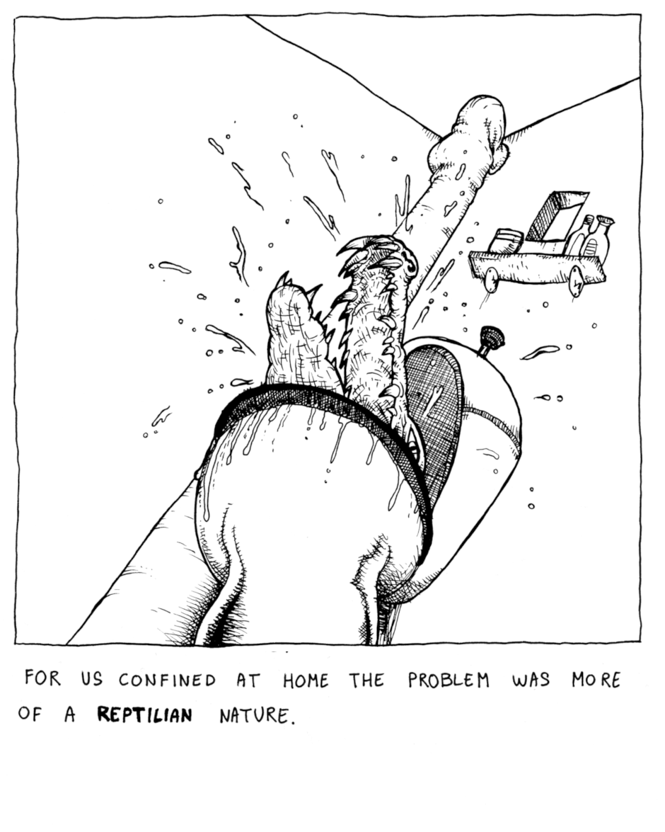 A daily quarantine comic. Nothing planned, nothing polished, leaving the imperfections in. One panel a day.