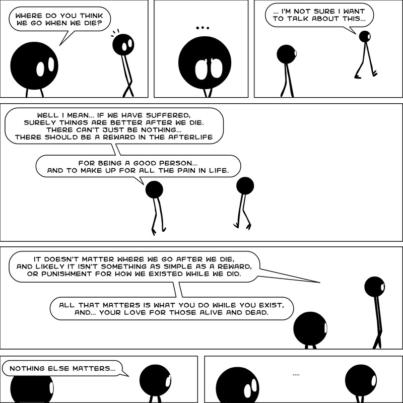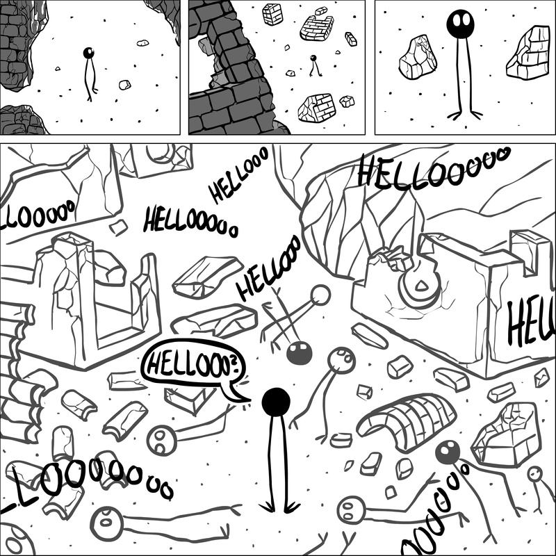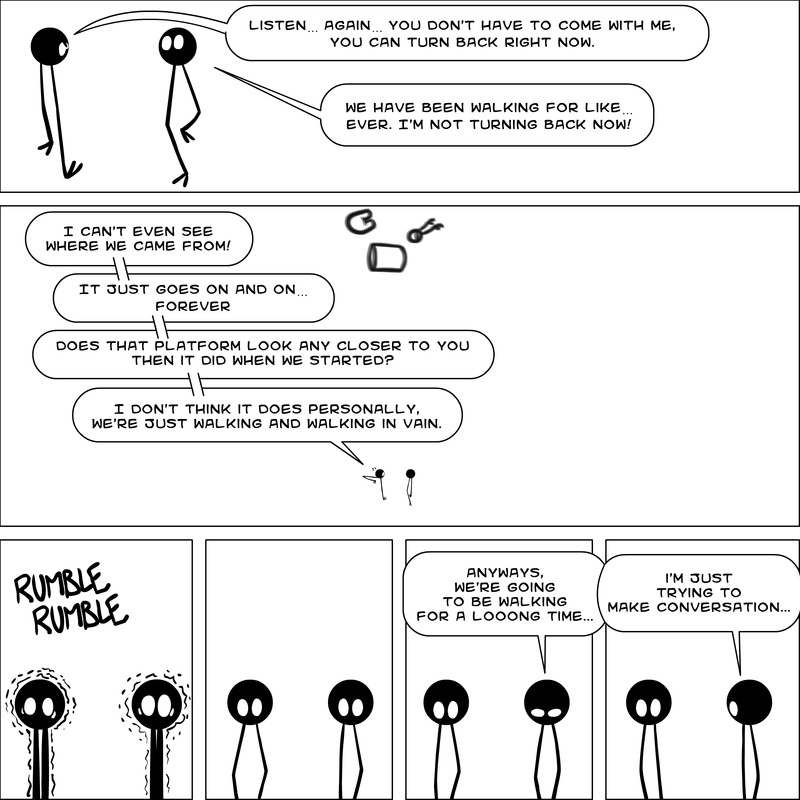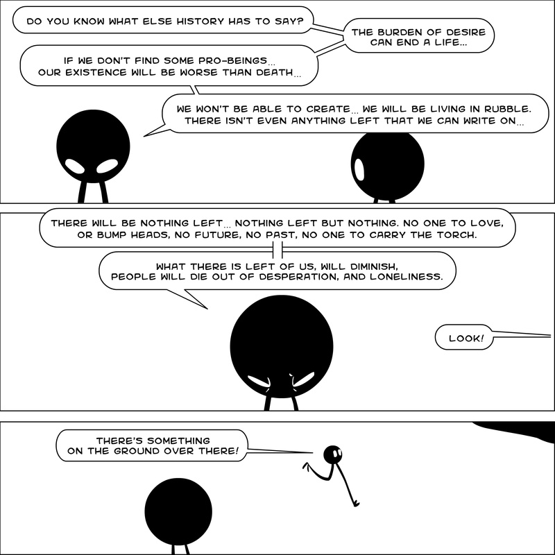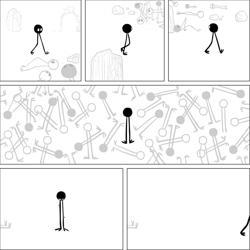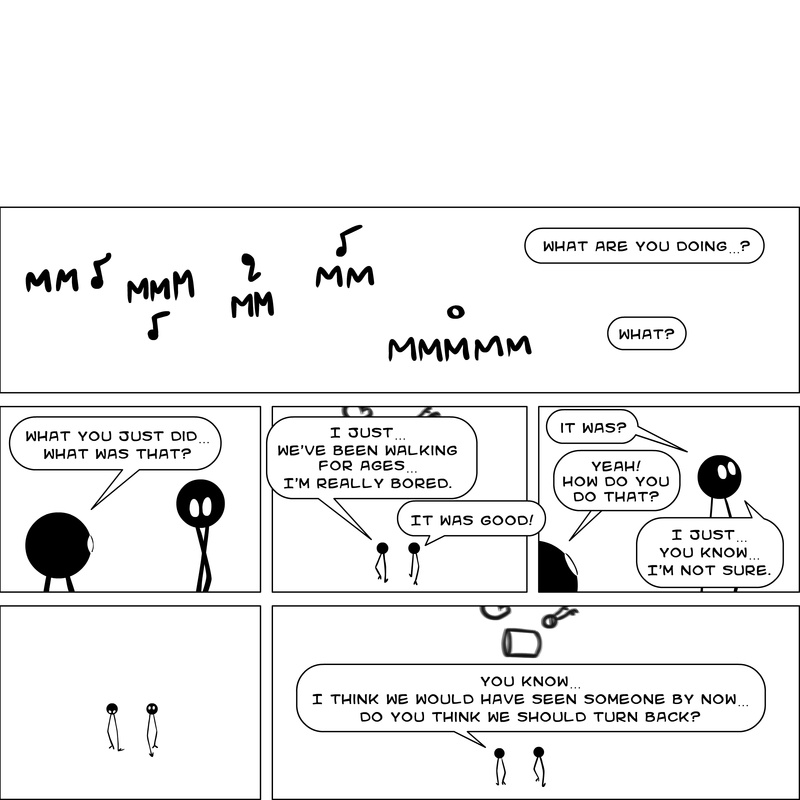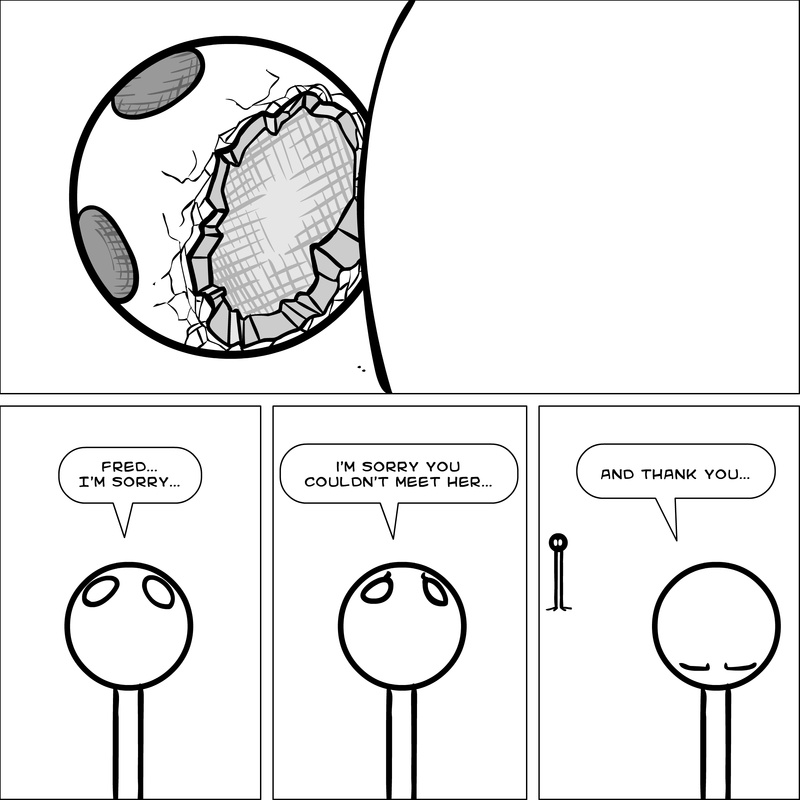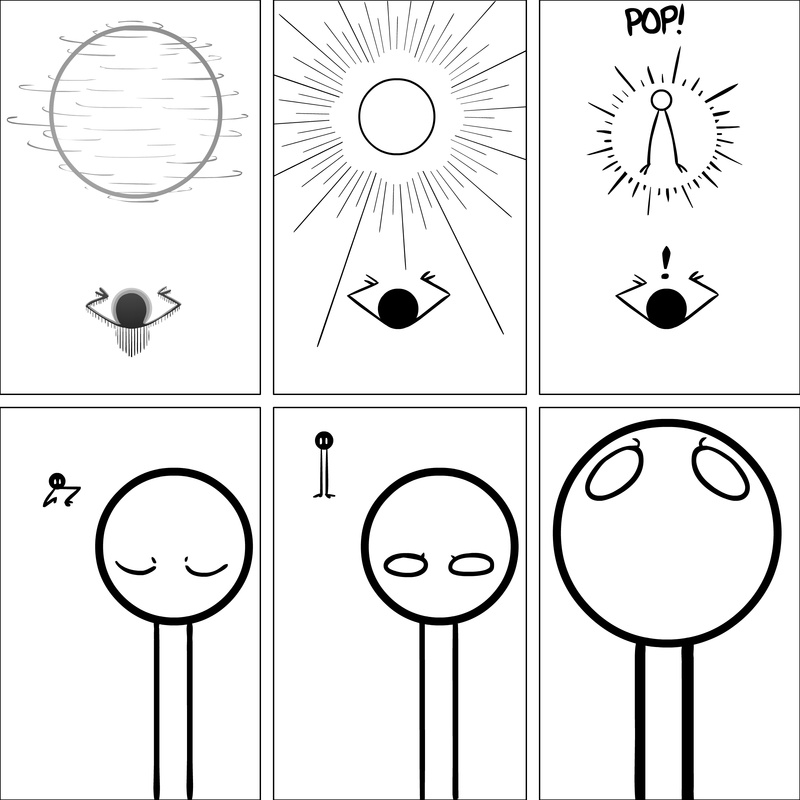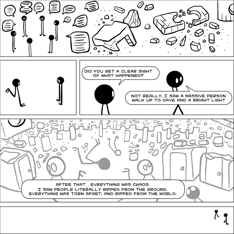 Dave's Wurld is a completed series about a child-like being living in an empty wurld. Dave has just discovered he has legs, and already he is on a journey of discovery, first to seek a shiny object which may or may not exist, and then to seek his purpose. Dave's Wurld has humble beginnings, but a simple act from Dave explodes into a universe of people and places, as well as Dave's rival, Anti-Dave. Dave will learn what it means to be worshiped by his people, loved and indeed hated, but will he learn responsibility? the fate of his wurld may depend on it.