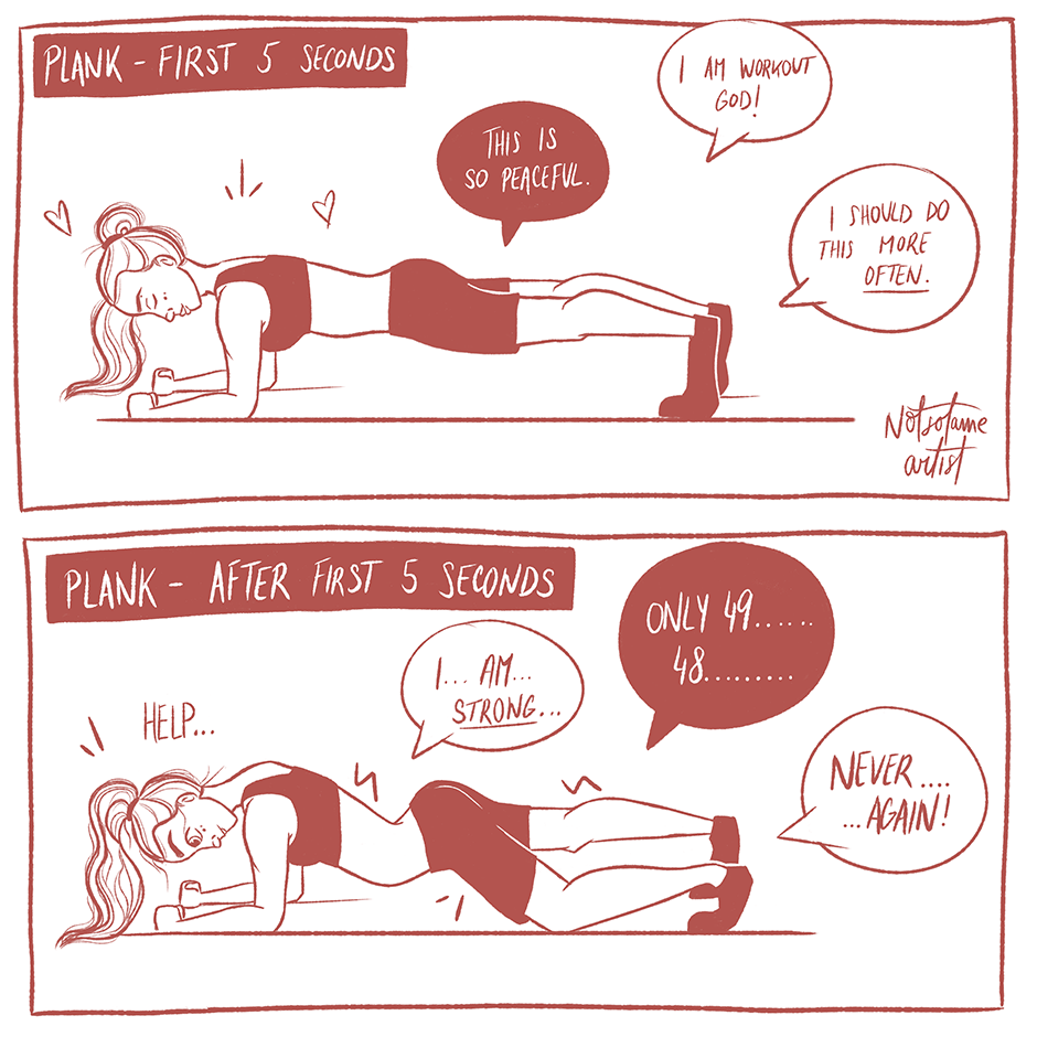 Plank is weird. First seconds are quite normal and I feel strong. And then it is straight up HELL.