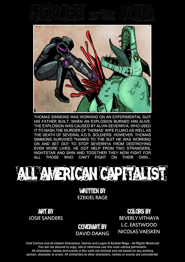 25 Chapters - Thomas Simmons was working on an experimental suit his father built, when an explosion burned him alive. However, he survived thanks to the suit he was working on and together with two strangers named Nightstar and Shin he now fights for all those who can't fight on their own...