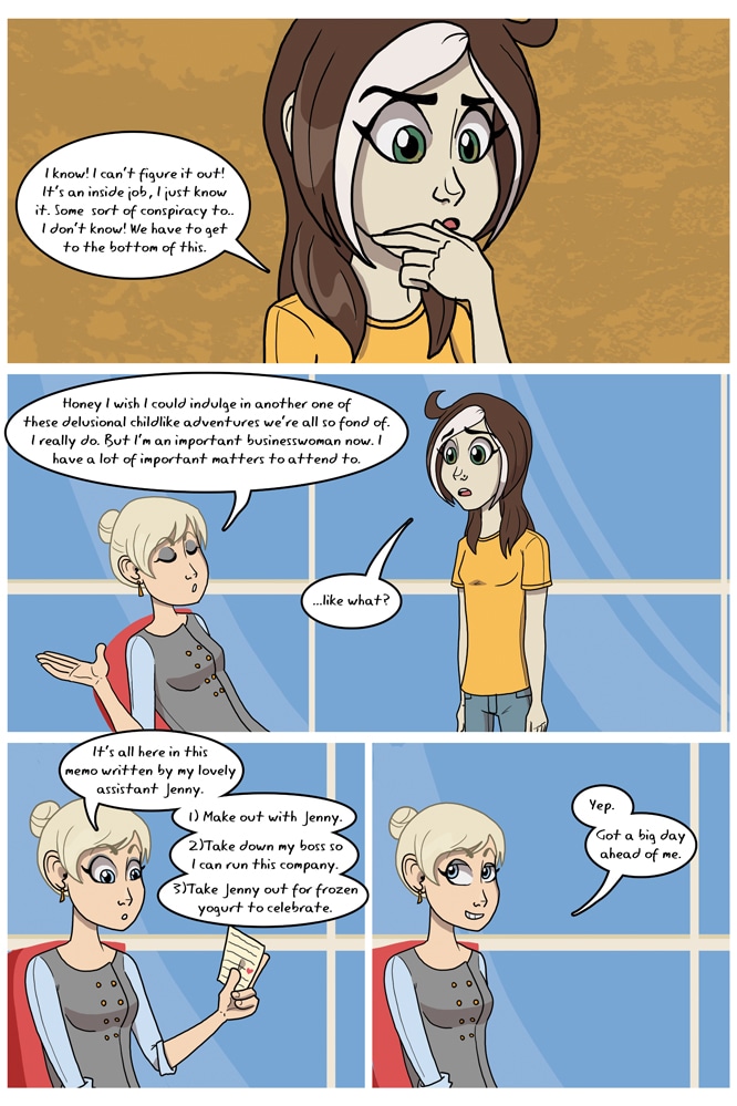After starting new jobs, Mona works towards climbing the corporate ladder, while Ariel attempts to crack a company wide conspiracy. (Original run: Aug 2013 - Oct 2013)
