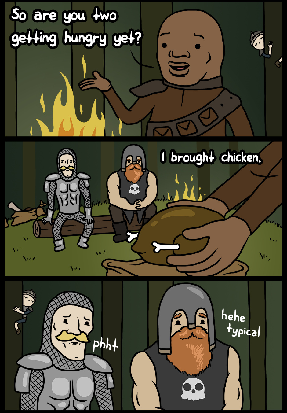 Three brave warriors have put their lives at risk to save Bailey, a little girl from the village a dragon kidnapped and locked up in an abandoned castle. They venture across hill and vale to bring back Bailey, but the story is actually more about Gus and Al, two average nobodys, who want to prove themselves as warriors and therefore try to rescue Bailey first.