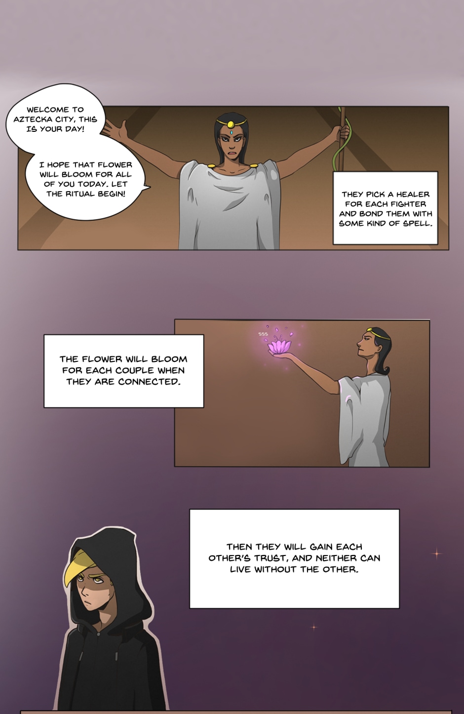 After gods destroyed this world, they left gems from their bodies that gave those who survived huge powers. After many years, the survivors split into two main groups - healers and fighters. In a world where anybody can become anything, no one can trust anyone, except those who are bonded together, depending on each other for their lives.