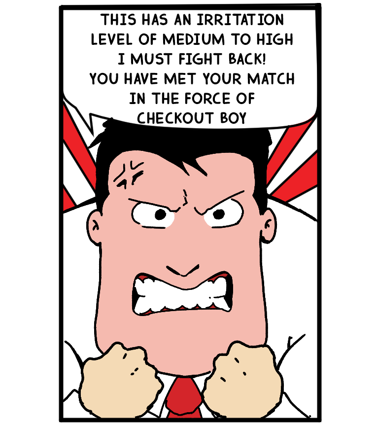 ***The remastered version*** A never seen before comic creation of a Cashier Assistant come superhero who will stop at nothing in bringing total convenience. Our hero, Checkout Boy, faces the many problems in the everyday life of working at a superstore. He must deal with such villiany as The ASBOs, thieves, old age pensioners, disabled people, and the continious threat of the murky toilets!