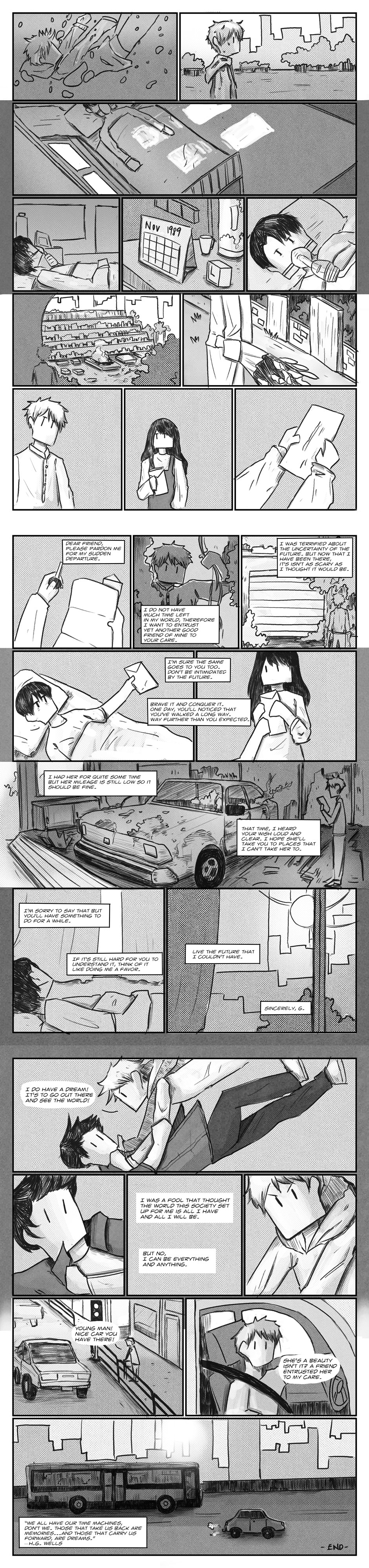 This story follows G, who travels to the future to see the sunrise one last time as he won’t live long enough to see the next sunrise because of a life threatening disease that left him bedridden. This story explores the theme of time and would the past or future matter to oneself.