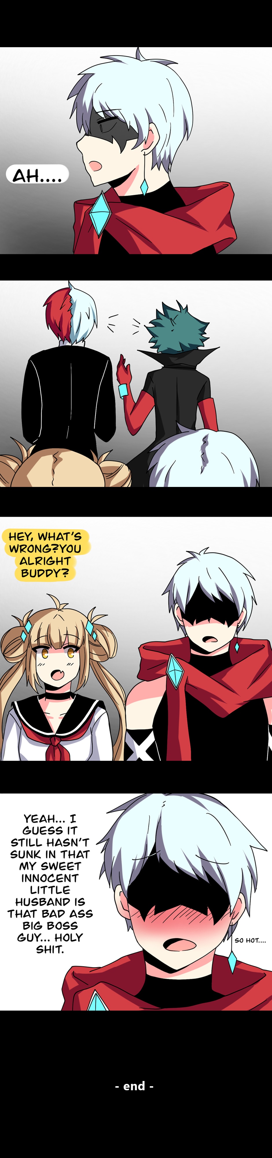 An AU where Izuku is the most feared and powerful villain but is also the house husband of the number one ranked pro hero, Bakugo Katsuki. Izuku makes sure the world is safe for his husband by striking fear and controlling other villains as the ‘Big boss’ of his villain organization.