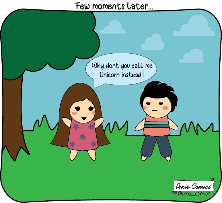Pixie is a cute adorable girl who secretly believes she is a Unicorn(may be she is, who knows). Bruce, her boyfriend, fell in love with her as she was a perfect blend of adorable and crazy! Join them on their crazy adventures through life! Updates every Tuesday and Friday