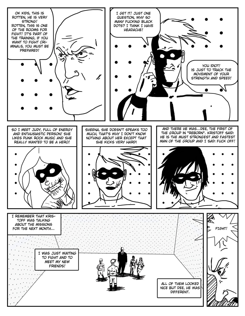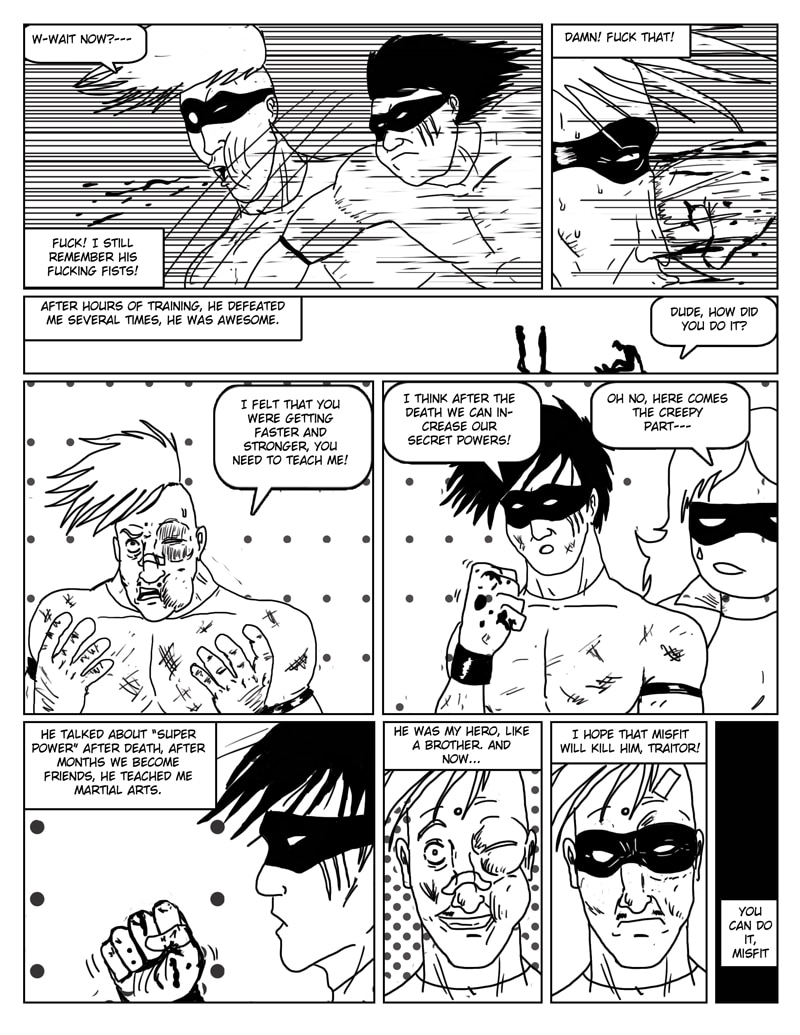 Misfit is part of a secret organization that kills criminals by using zombies as scapegoats, but everything goes wrong when the scientist who created them is killed. Superheroes, Zombies, Gore, Martial Arts, and violence! Now every Monday. Created by Jorge Ibarra.