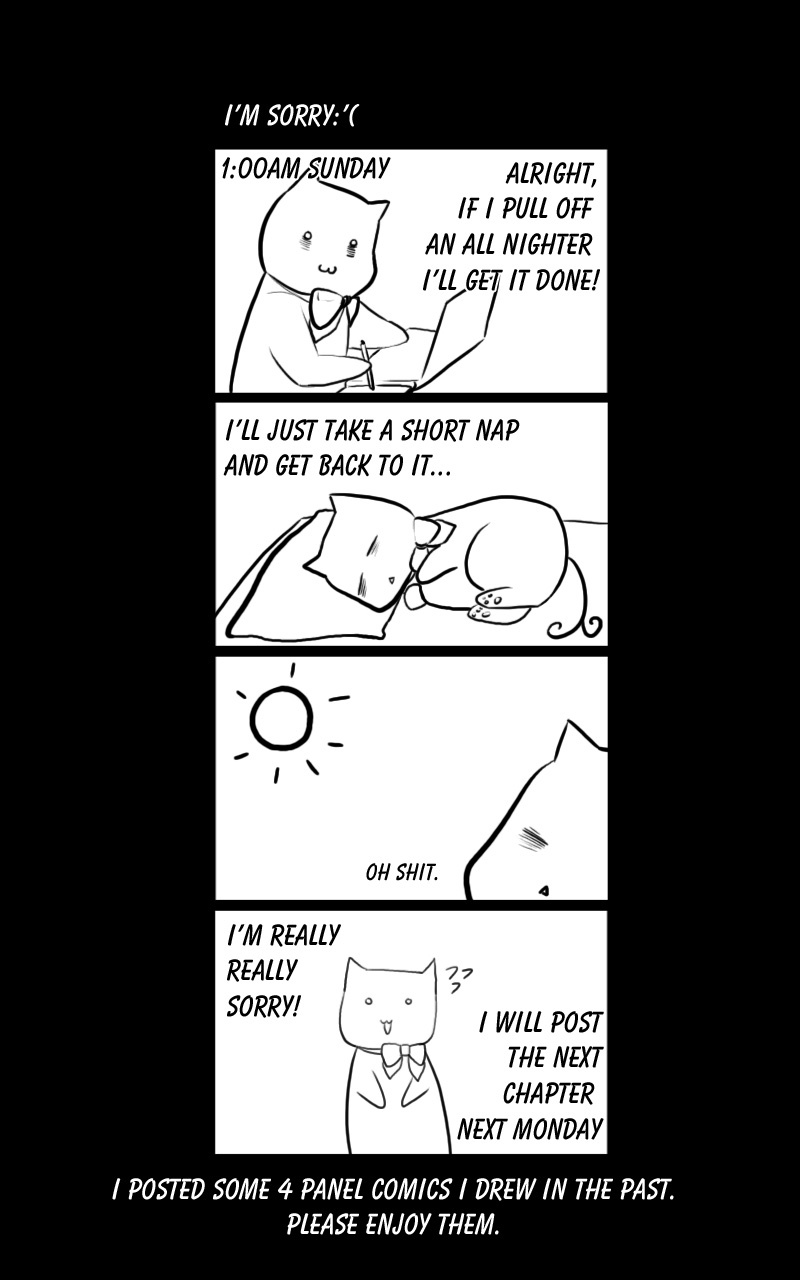 I am sorry that I couldn't upload on Monday. From now on I will upload on Monday morning at 10 am or let you know in advance if I am busy so I don't make you wait endlessly. Thank you for reading :)