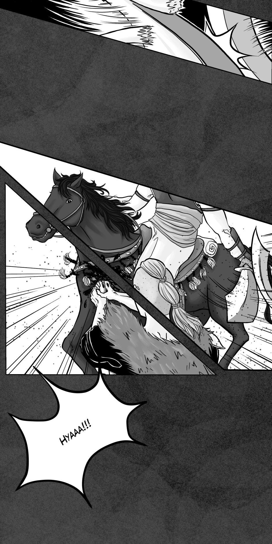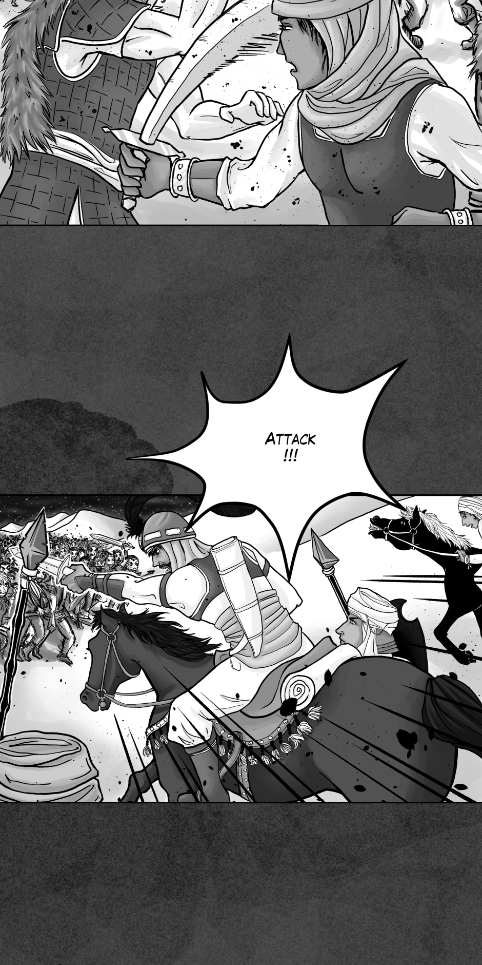 Grisly! But great work on the action shots! I love how you used the perspective and your attention to anatomy (especially on the horses). Great job! :)