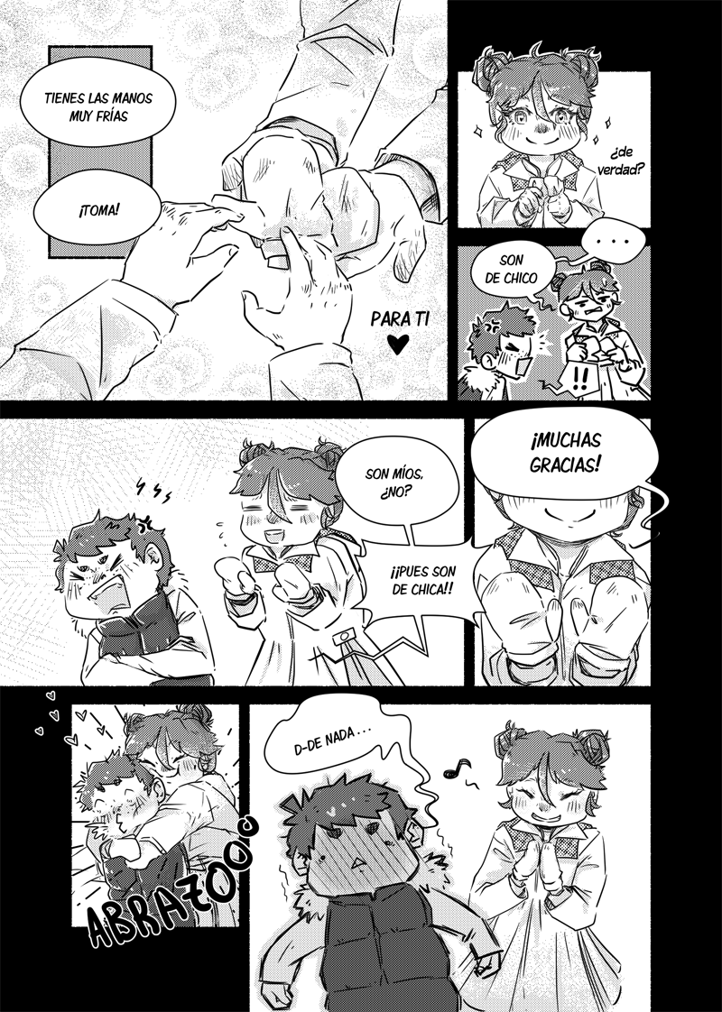 Mini-Veg y Mini_Coral me tienen enamorada <3 Nunca he entendido lo de los guantes y zapatos asociados a un género concreto... pero ha dado para un momento para enmarcar de esta historia. ¡Gracias Ai, eres la mejor! ;)