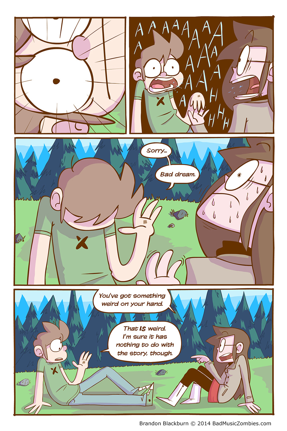 If you'd like to read ahead, you can read a new page every Monday at http://badmusiczombies.com