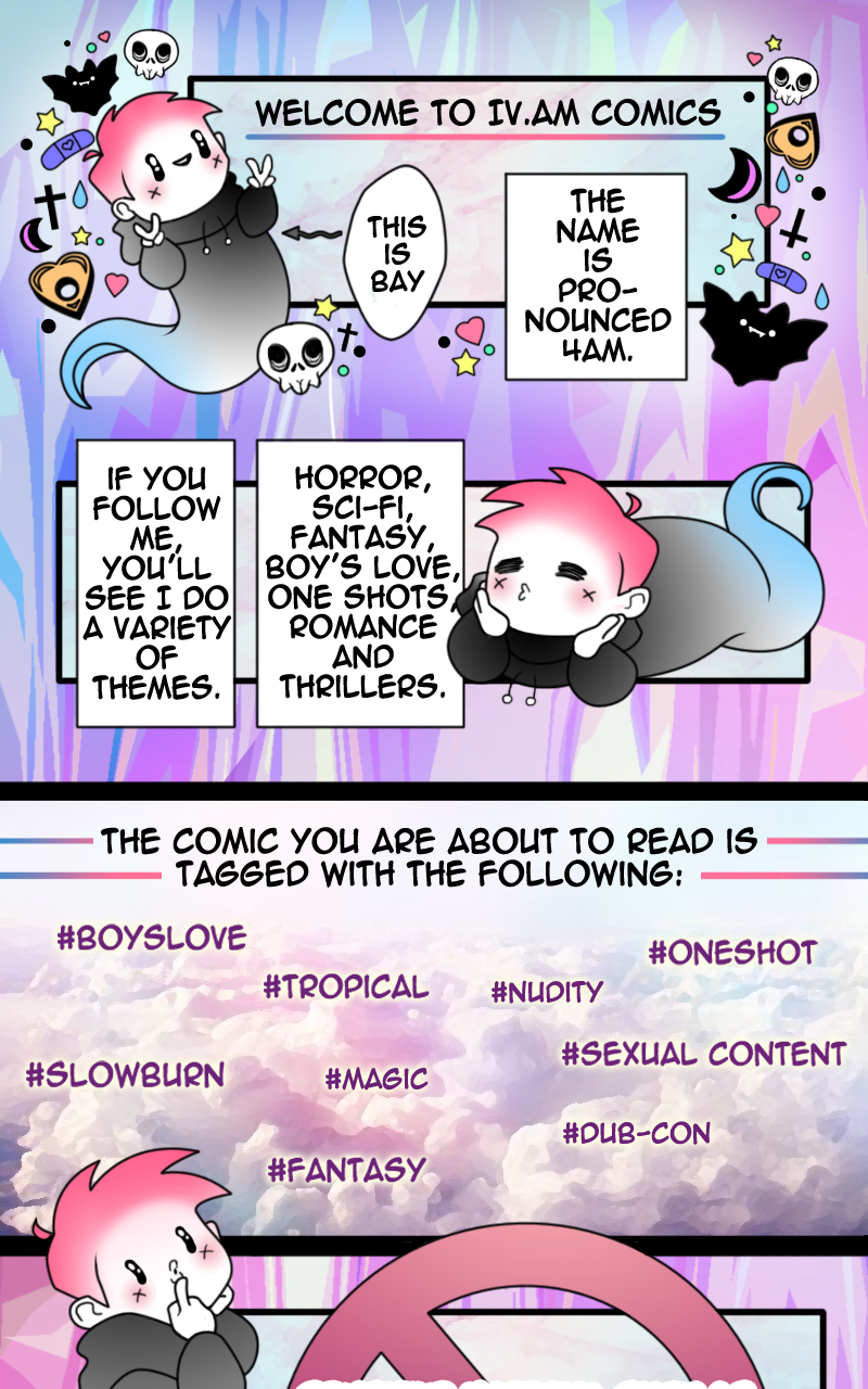 CHROMA is a Boy's Love one shot comic. Airline steward Kaito is plagued by old family superstitions as he desperately seeks his soulmate, while his not-so-picky best mate Miles seems to find love everywhere. When tragedy strikes and Kai ends up on a tropical island inhabited by an all female tribe of warriors, will he finally find love or will language barriers, magic water and haunted caves spell out even more disaster?