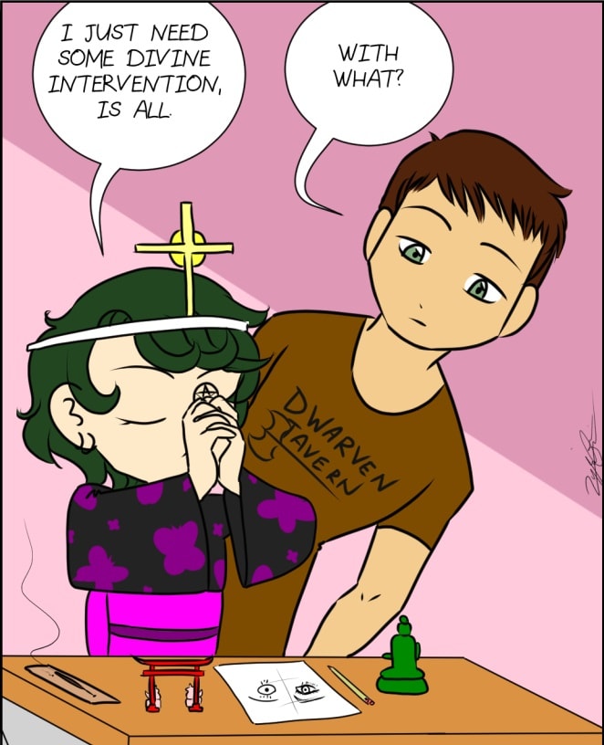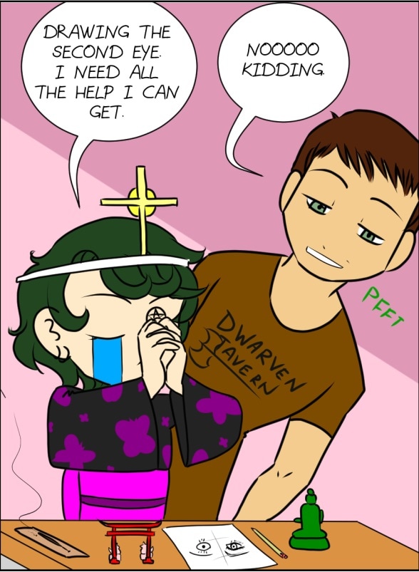 Actually, the problem I have most is drawing a face from the front accurately. It's always lopsided. Alas, there is only so much help the Gods can give me.