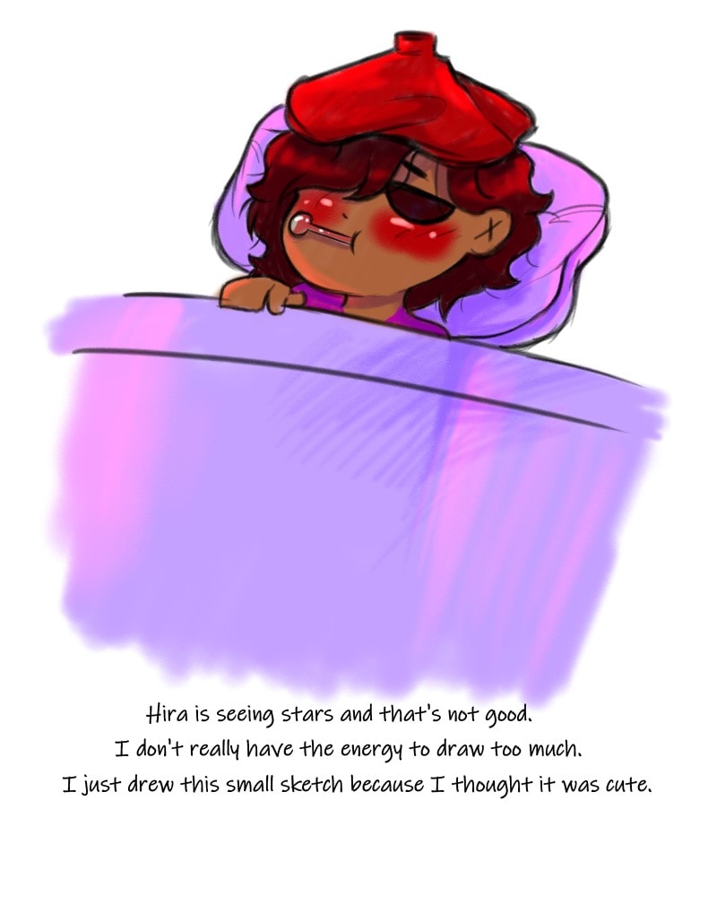 As I was drawing the little skit, I fell half way. I managed to finish the 2nd page, but I started to feel tired and weak. I managed to scrape up enough energy to do this doodle and share it. Idk how bad I got it, but it's safe to take this month off, for my safety...I apologize for this but safety first.