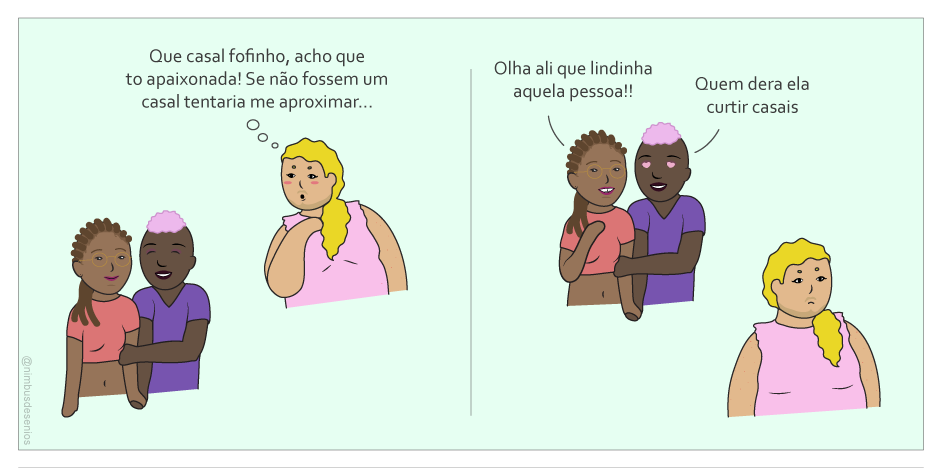 A norma monogâmica, ou seja, a norma de que todo indivíduo deve achar seu par perfeito e ser exclusivo a ele podem atrapalhar muitas oportunidades de parceria, amizade ou romance, como acontece aqui com nossas personagens.