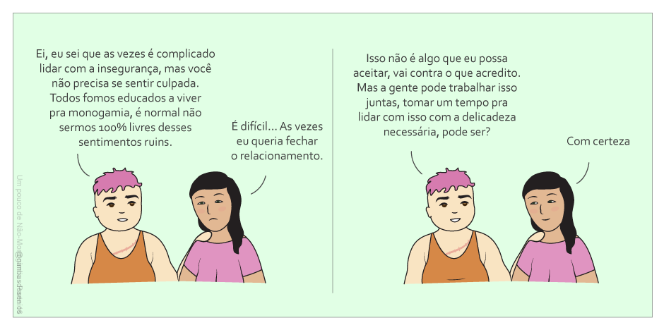 Relacionamentos são complicados e pessoas tem diferentes maneiras de lidar com a monogamia enraizada. Não é egoísmo rejeitar o fechamento da relação, a liberdade individual é muito íntima, não se deve forçar ninguém a ser monogâmico ou não-monogâmico, mas é possível se manter firme a cerca de seus desejos, aceitando ou rejeitando o que lhe for apresentado. É bom entender também que é normal sentir insegurança, errado é projetá-la em seus parceiros com restrições e obrigações.