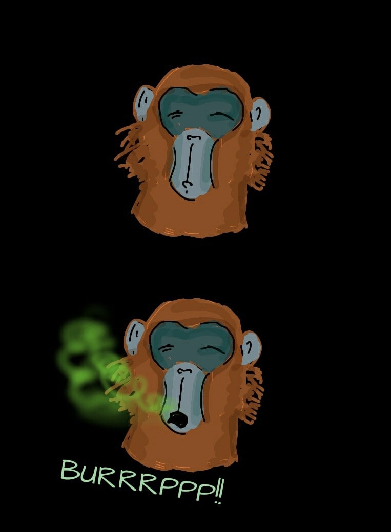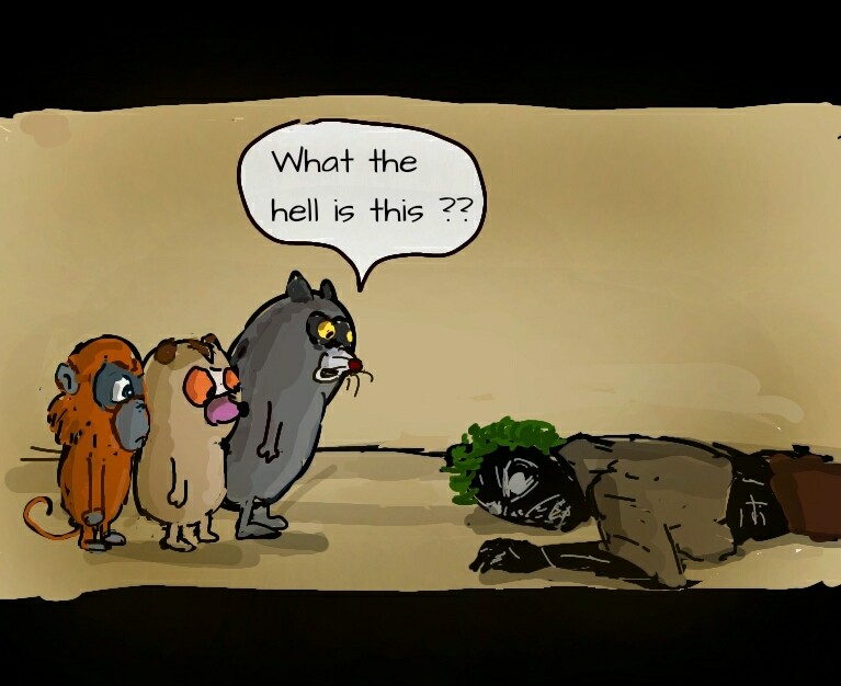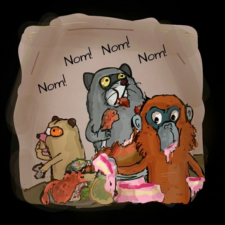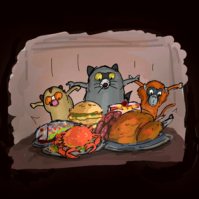 3. A Lutung monkey named Fersus realized that how important was not just to eat meals but also how to enjoy them, especially when it came to human made foods. So they vowed from that day that they would go to chase any delicious food in this world no matter how or who or what that became their obstacles.