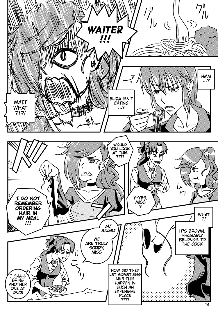 -_- I'd kick Eliza's bum. Totally had customers like her before! I clearly remember this one blonde family coming in--all of them blonde, which wasn't an issue until they found a blonde hair in their food...myself and EVERYONE who was working that day had either brown or black hair. They still made a big fuss and demanded a discount.