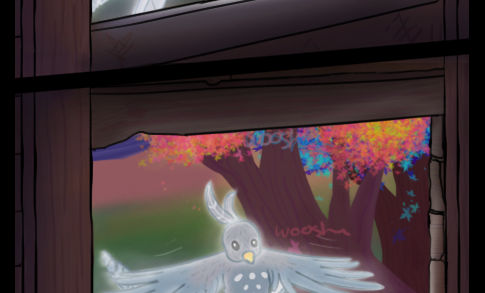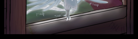 A young white queztal arrives its destination. The tree house is illuminated by the shine of this wonderful creature.