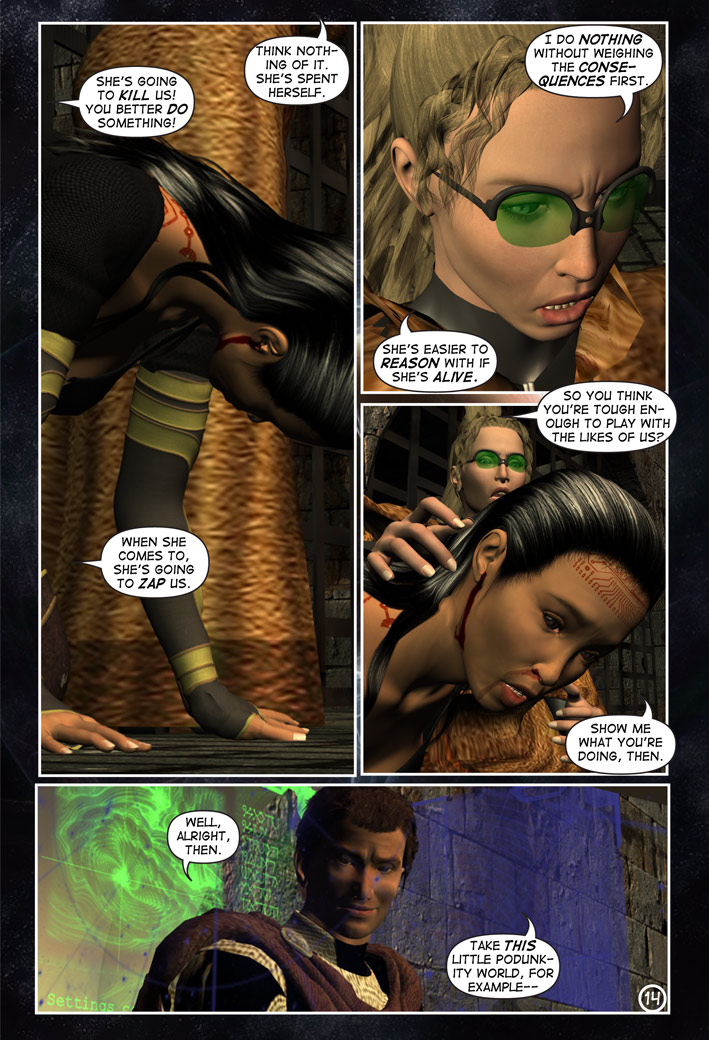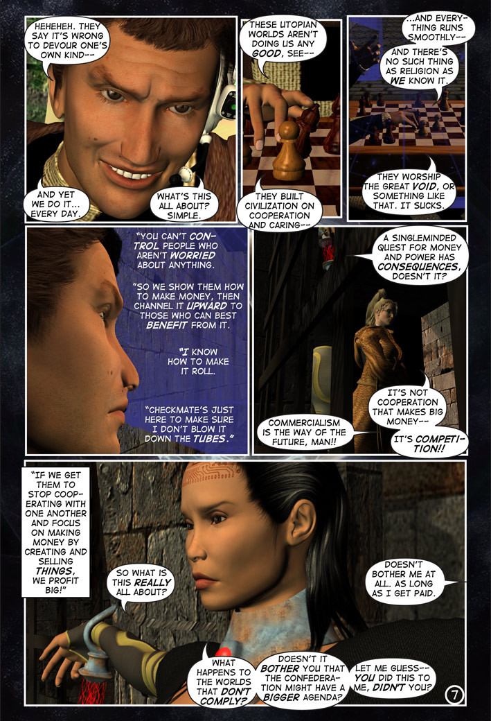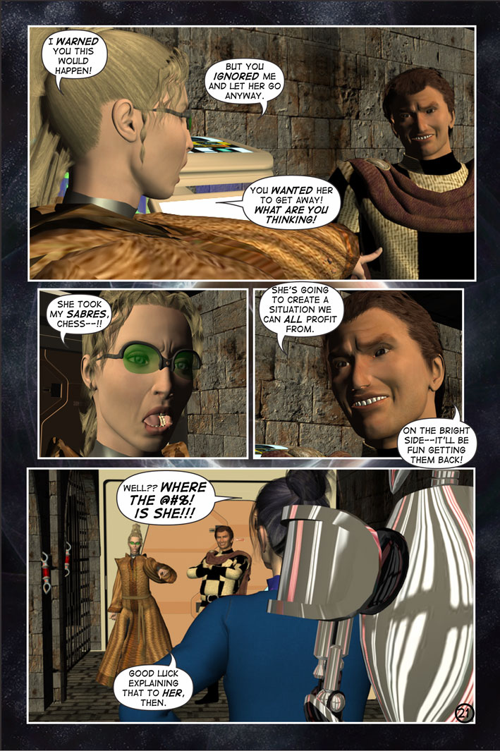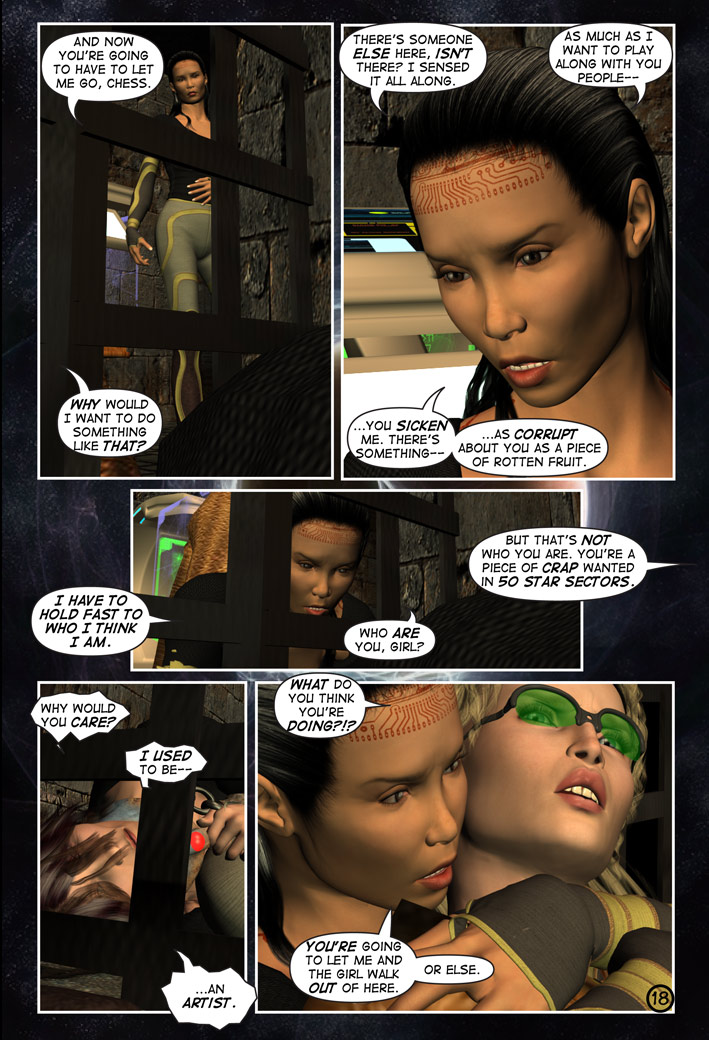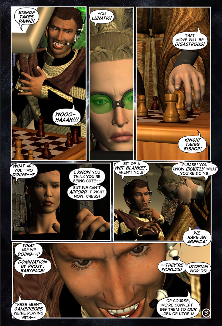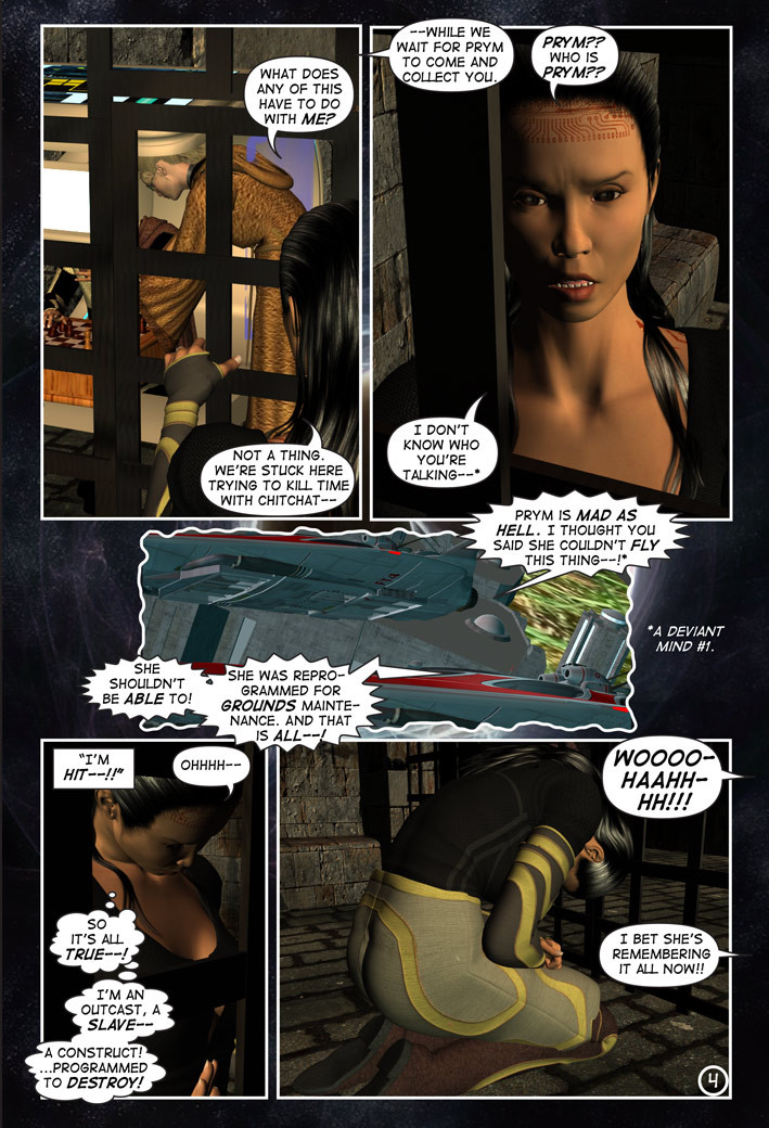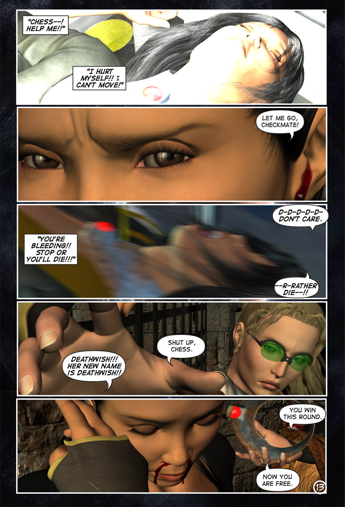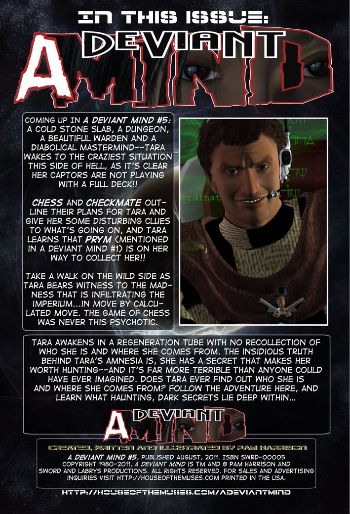 A cold stone slab, a dungeon, a beautiful warden and a diabolical mastermind–Tara wakes to the craziest situation this side of hell, as it’s clear her captors are not playing with a full deck!! CHESS and CHECKMATE outline their plans for Tara and give her some disturbing clues to what’s going on, and Tara learns that Prym (mentioned in A Deviant Mind #1) is on her way to collect her!! Take a walk on the wild side as Tara bears witness to the madness that is infiltrating the Imperium…in move by calculated move. The game of chess was never this psychotic.