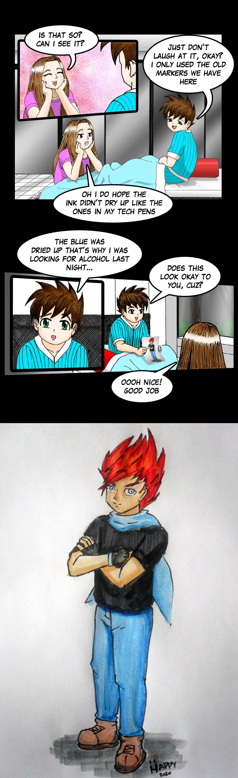 Mappy uses old markers to draw Andrew. Andrew from Rise of the Heroes by: Dual Dragons https://tapas.io/series/Rise-of-the-Heroes