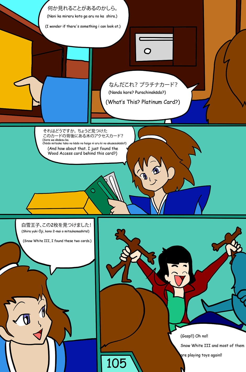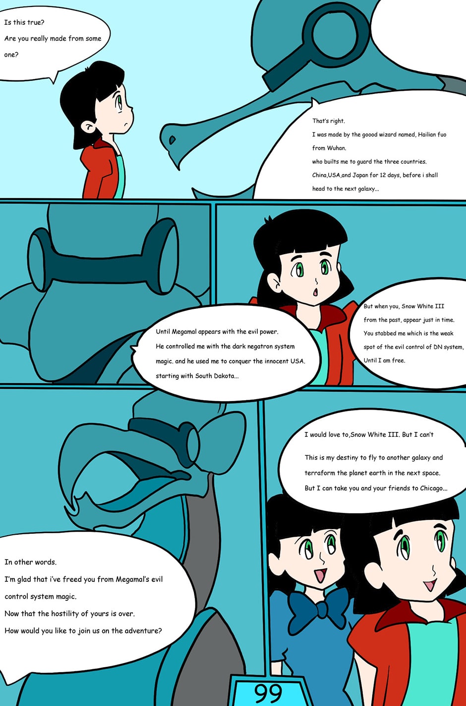 when Megamal is defeated. they pay their respect to Snow White III who thinks he's departed. but the stars has duplicated Snow White III with the new triplet Snow White III(Female), Snow White II is finally surprised that she finally got him back.