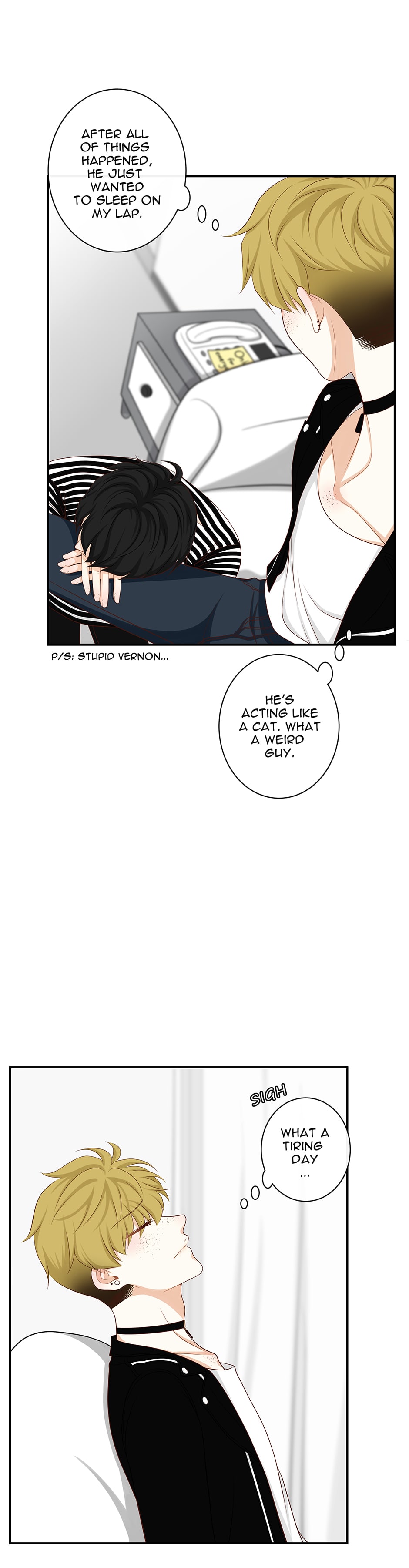 Vernon is living a new life oblivious to his past, after losing his memory four years ago in an accident. But things change when he decides to foster a little black cat who turns out to be a "cat boy" instead. The mysterious arrival of this cat boy into Vernon's life will bring back some unwanted memories. Will Vernon still be the same? What are the dark mysteries of his past and who is this strange man he keeps seeing in his memories? This is a rework of the old version with some new twists.