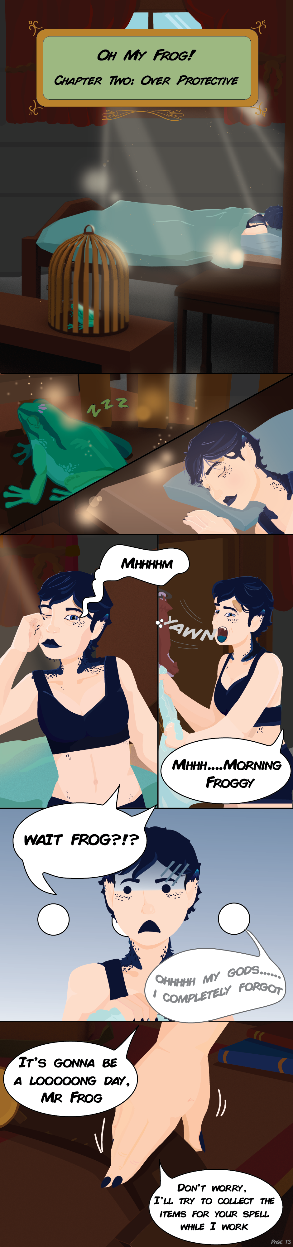 Efri Almarky is a plucky witch with weak mana who strives to do just as much as the full mana magic users around her. Unfortunately one of her unique magic solutions goes awry when the spell hits the wrong target, leaving her with a big problem. Or a small green problem, to be exact.