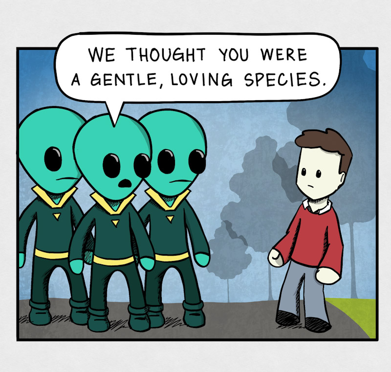 *Gets slaped my alien* WT *turns around sees alien*........DOGO GET THEM!
